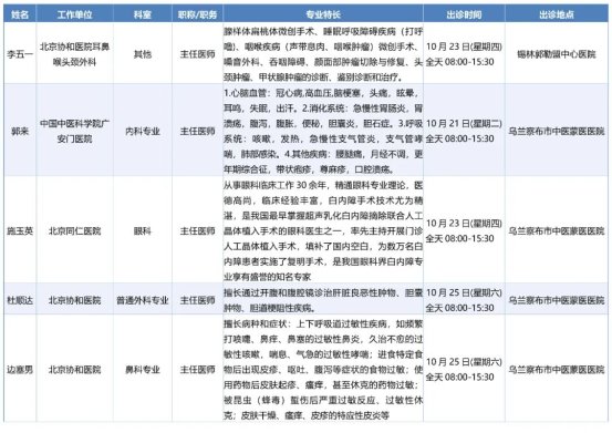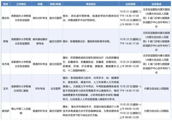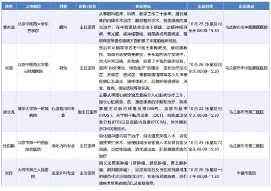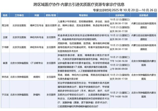 跨区域医疗协作-内蒙古引进优质医疗资源专家诊疗信息