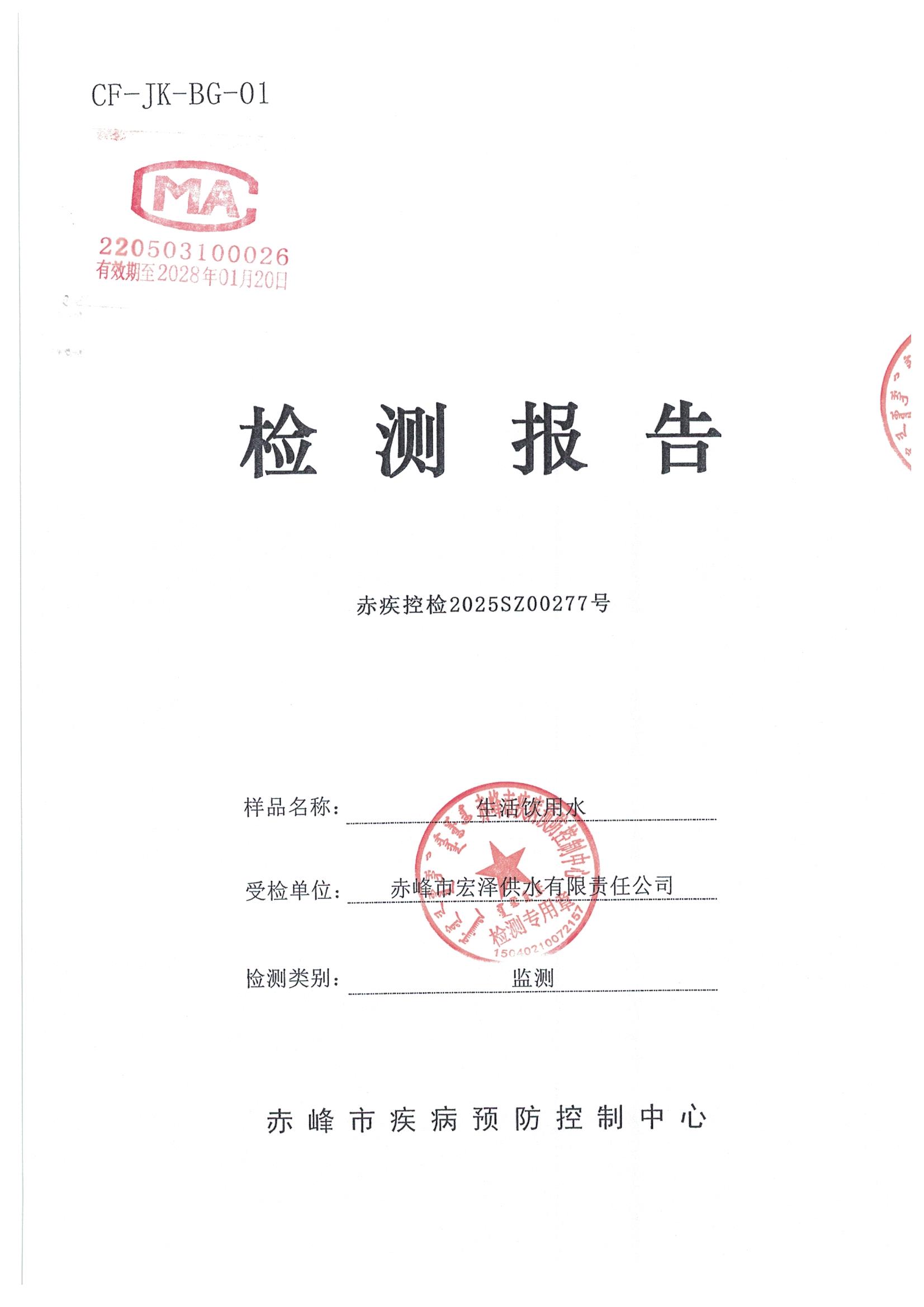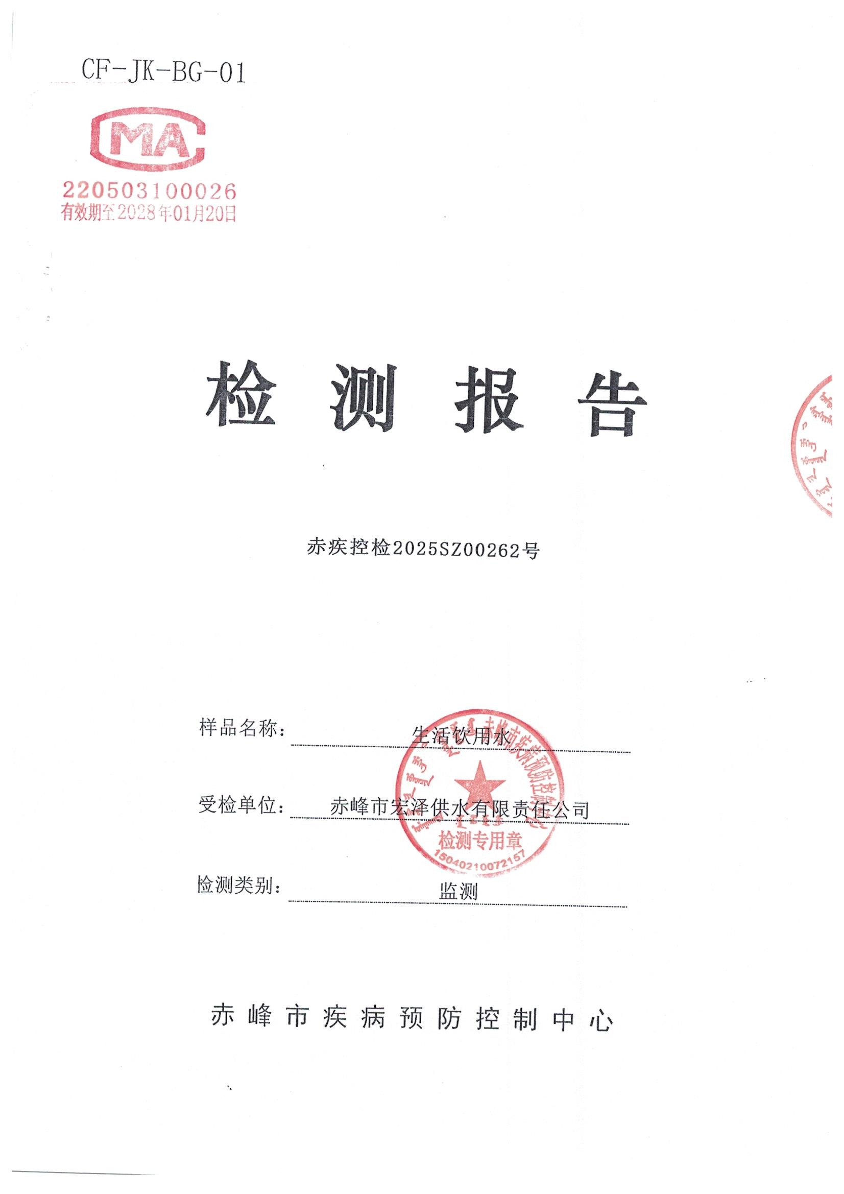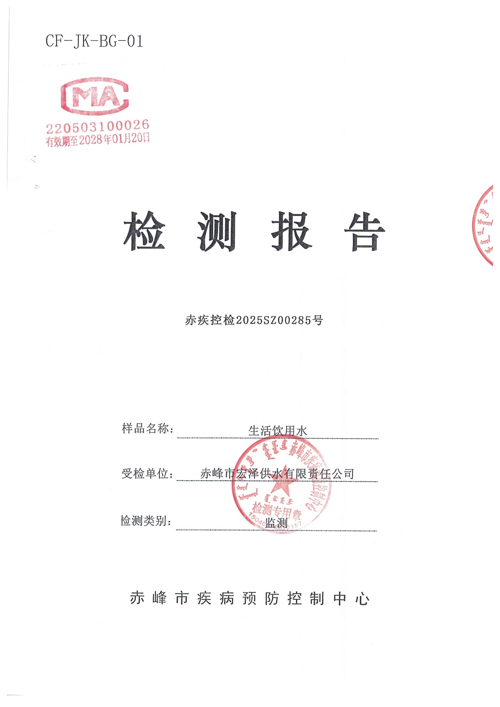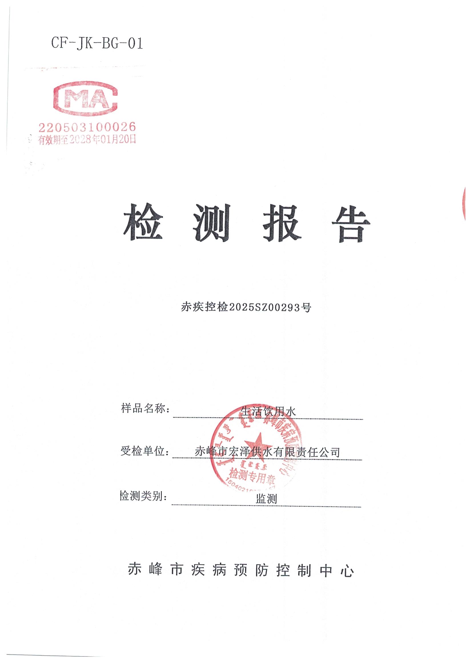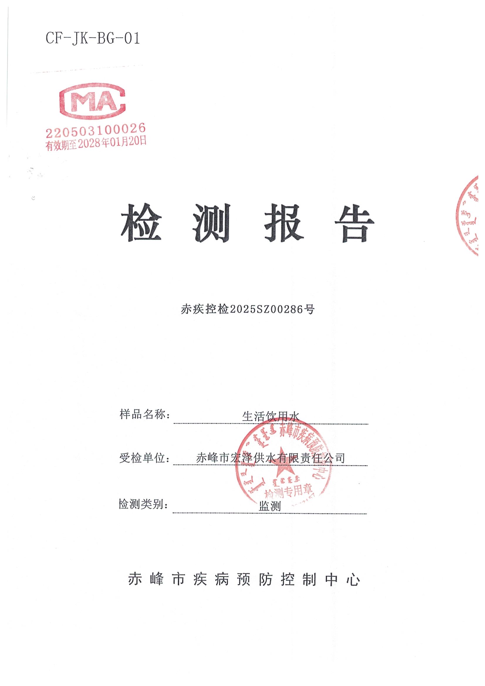 按照《赤峰市水污染防治工作方案》要求,现将赤峰市宏泽供水有限责任公司一水厂、二水厂、四水厂、赤峰九龙供水有限责任公司2025年第三季度生活饮用水水质检测结果予以公告。