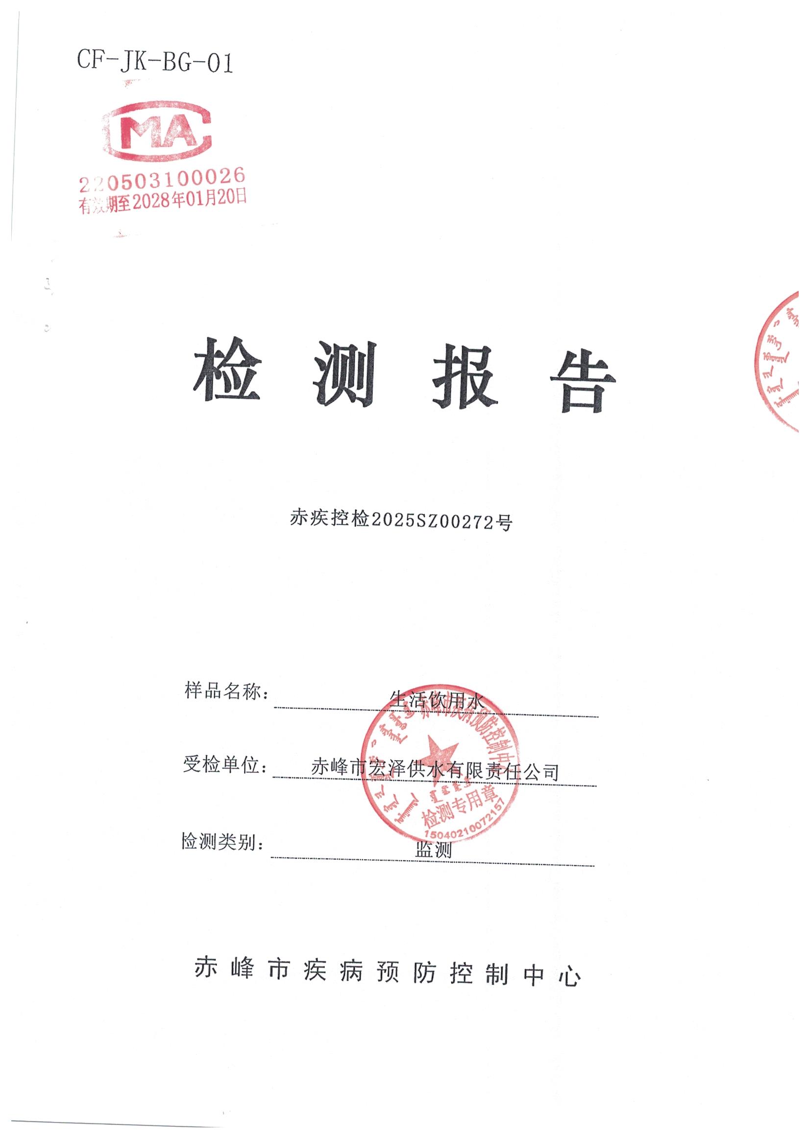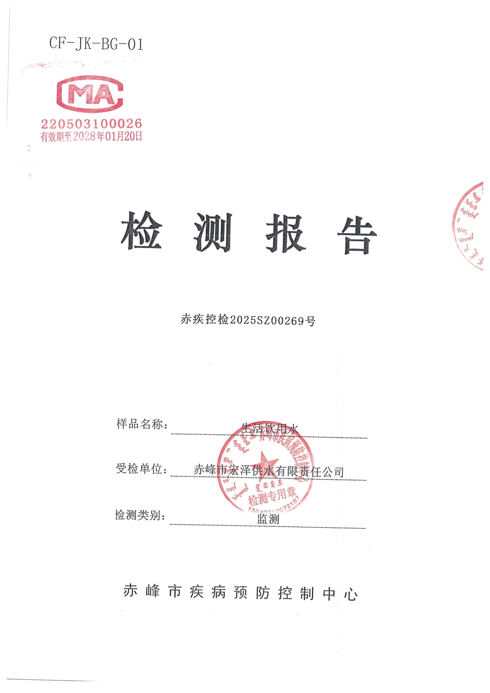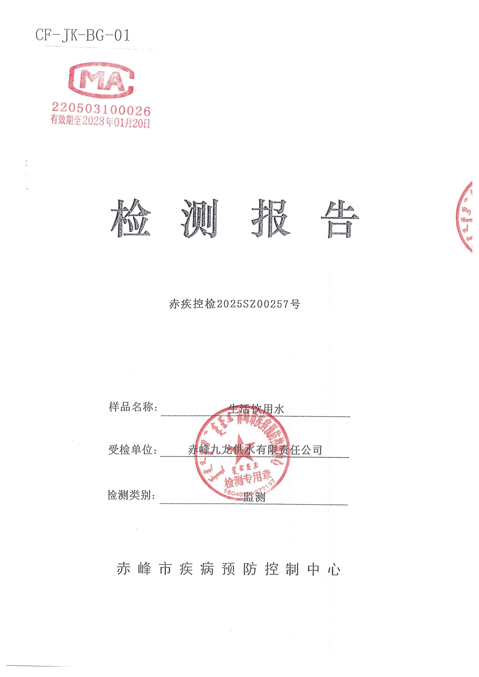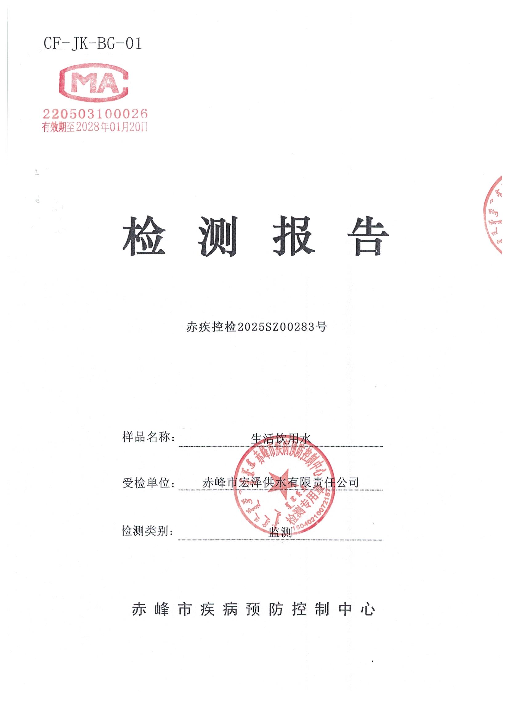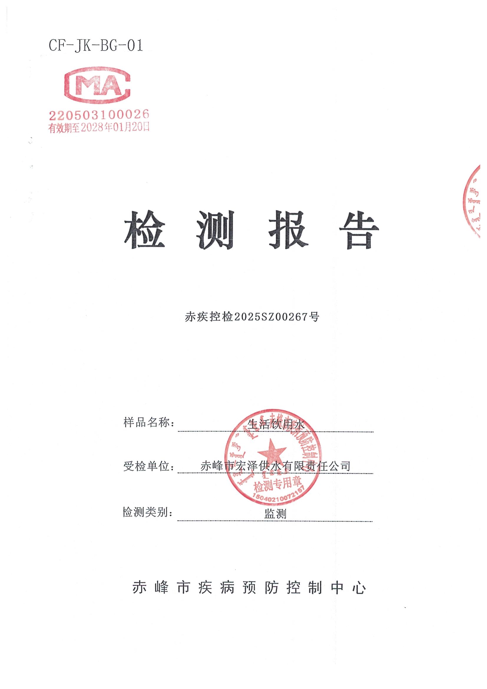 按照《赤峰市水污染防治工作方案》要求,现将赤峰市宏泽供水有限责任公司一水厂、二水厂、四水厂、赤峰九龙供水有限责任公司2025年第三季度生活饮用水水质检测结果予以公告。