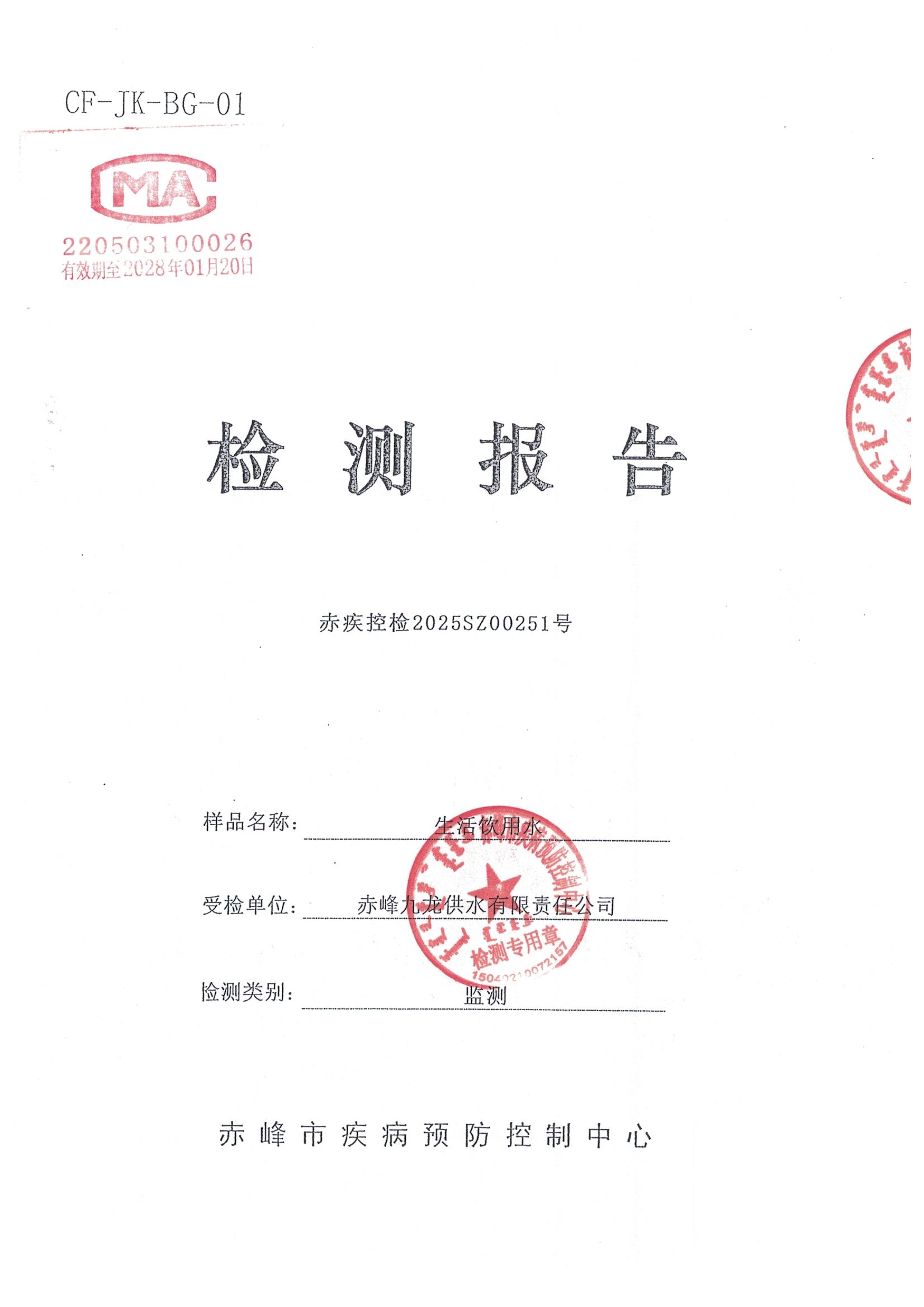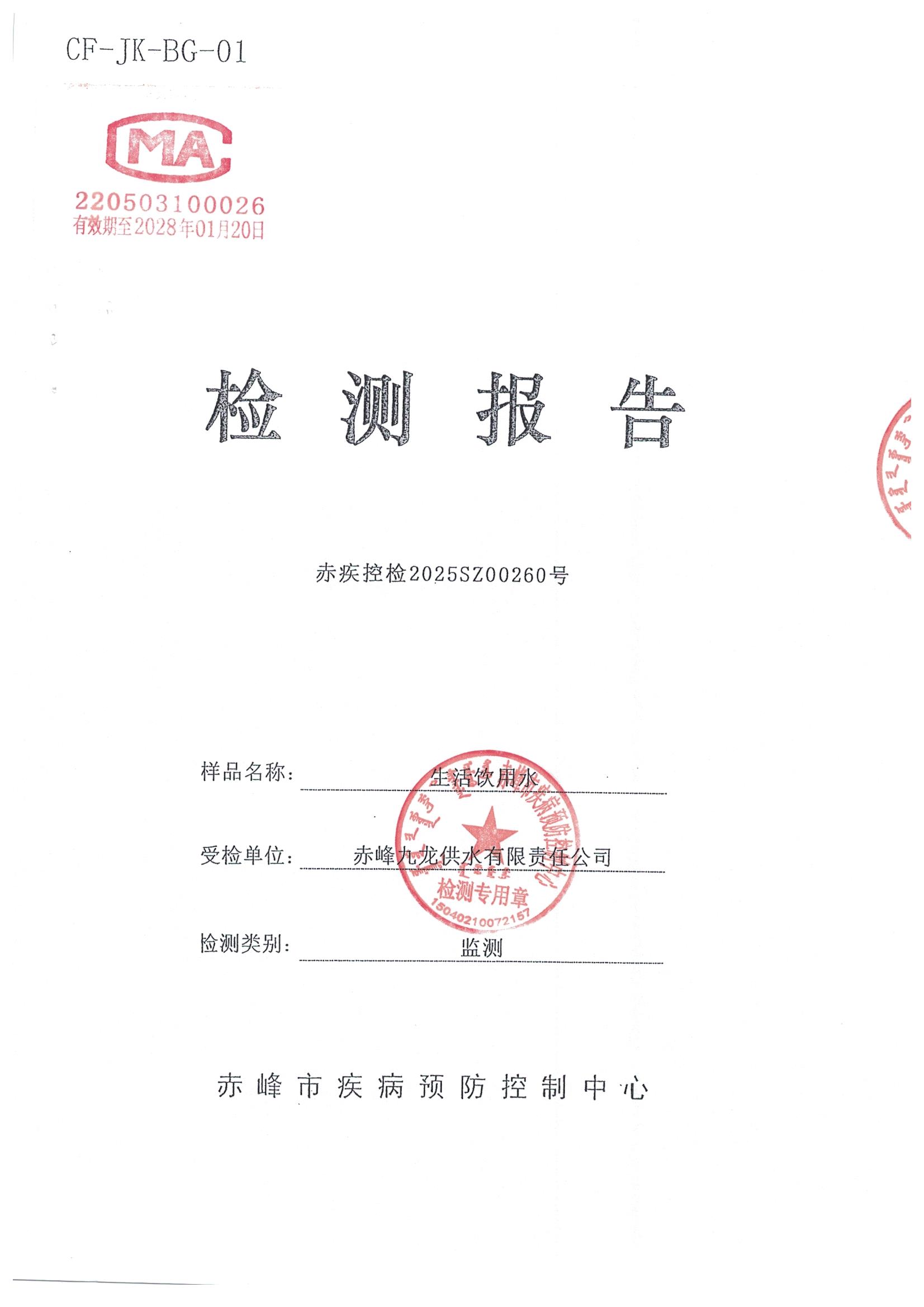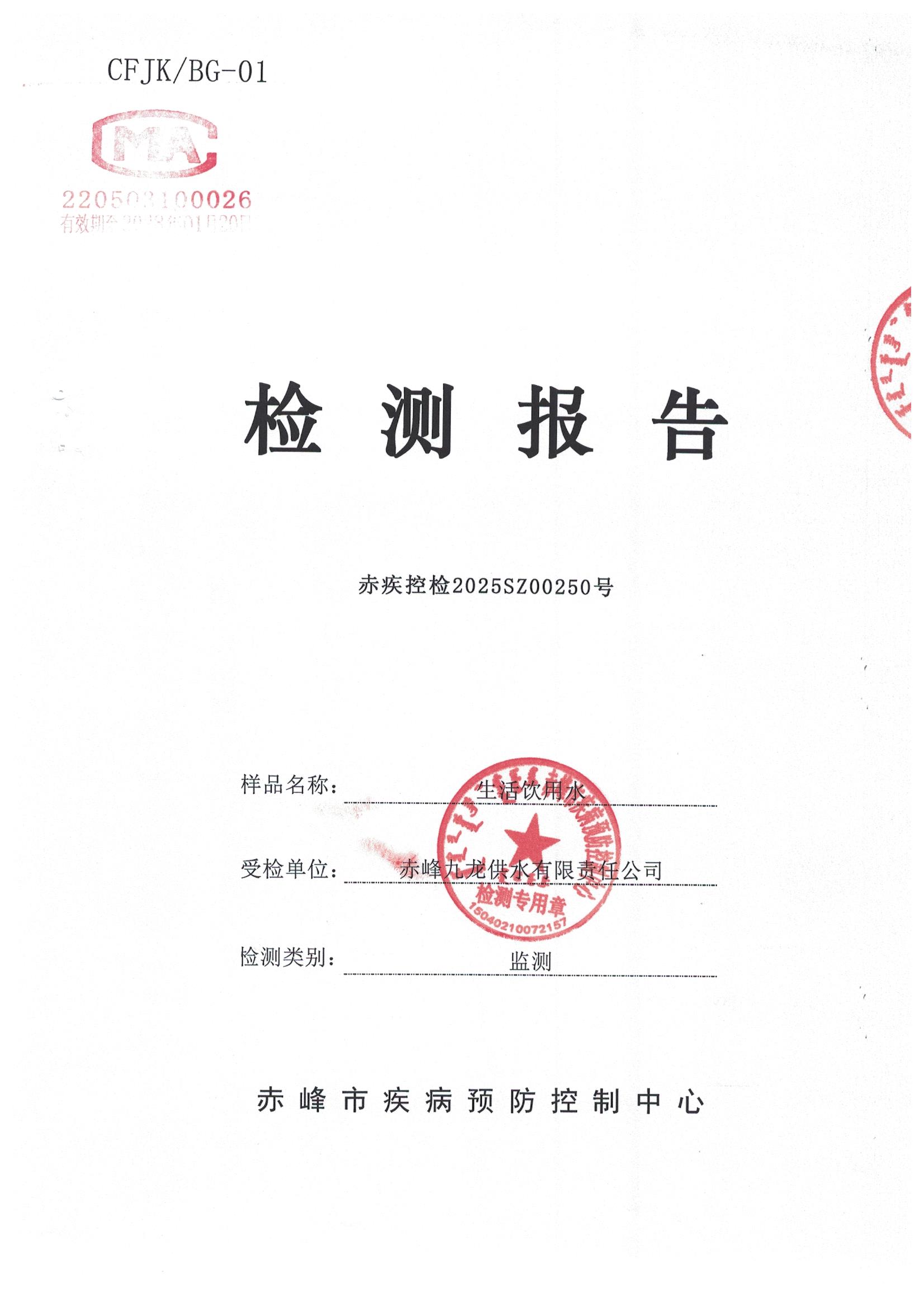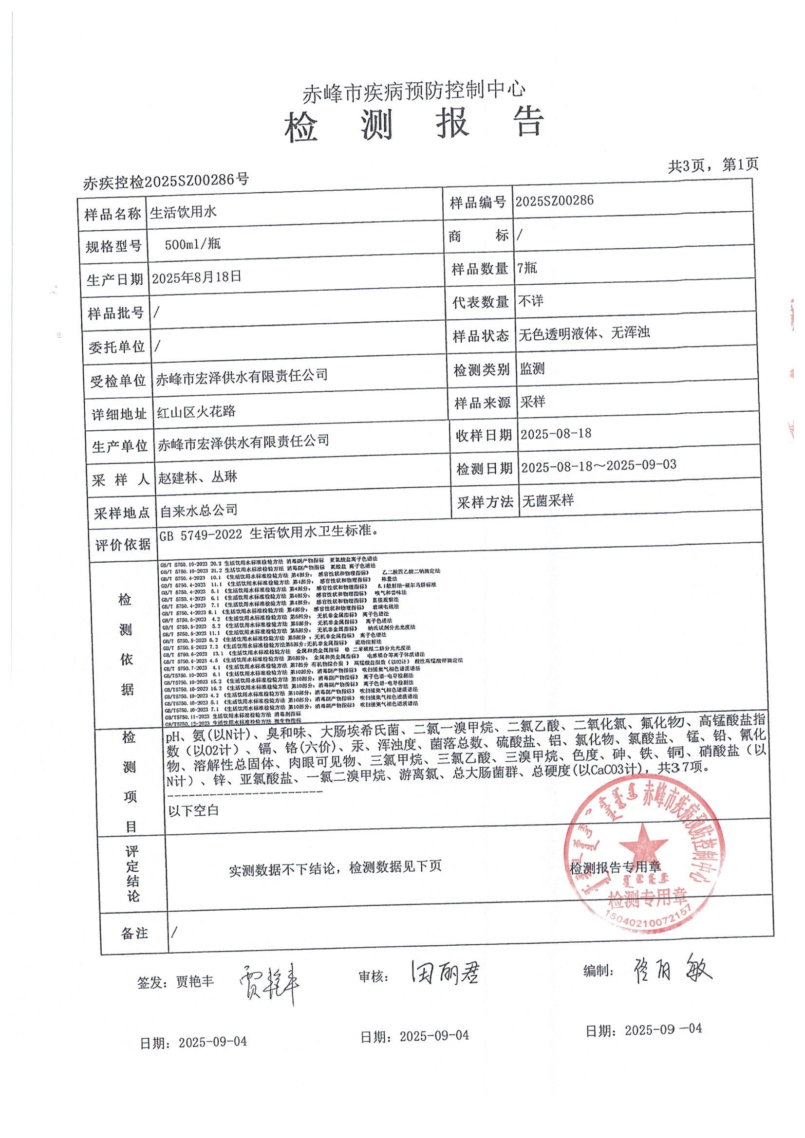 按照《赤峰市水污染防治工作方案》要求,现将赤峰市宏泽供水有限责任公司一水厂、二水厂、四水厂、赤峰九龙供水有限责任公司2025年第三季度生活饮用水水质检测结果予以公告。