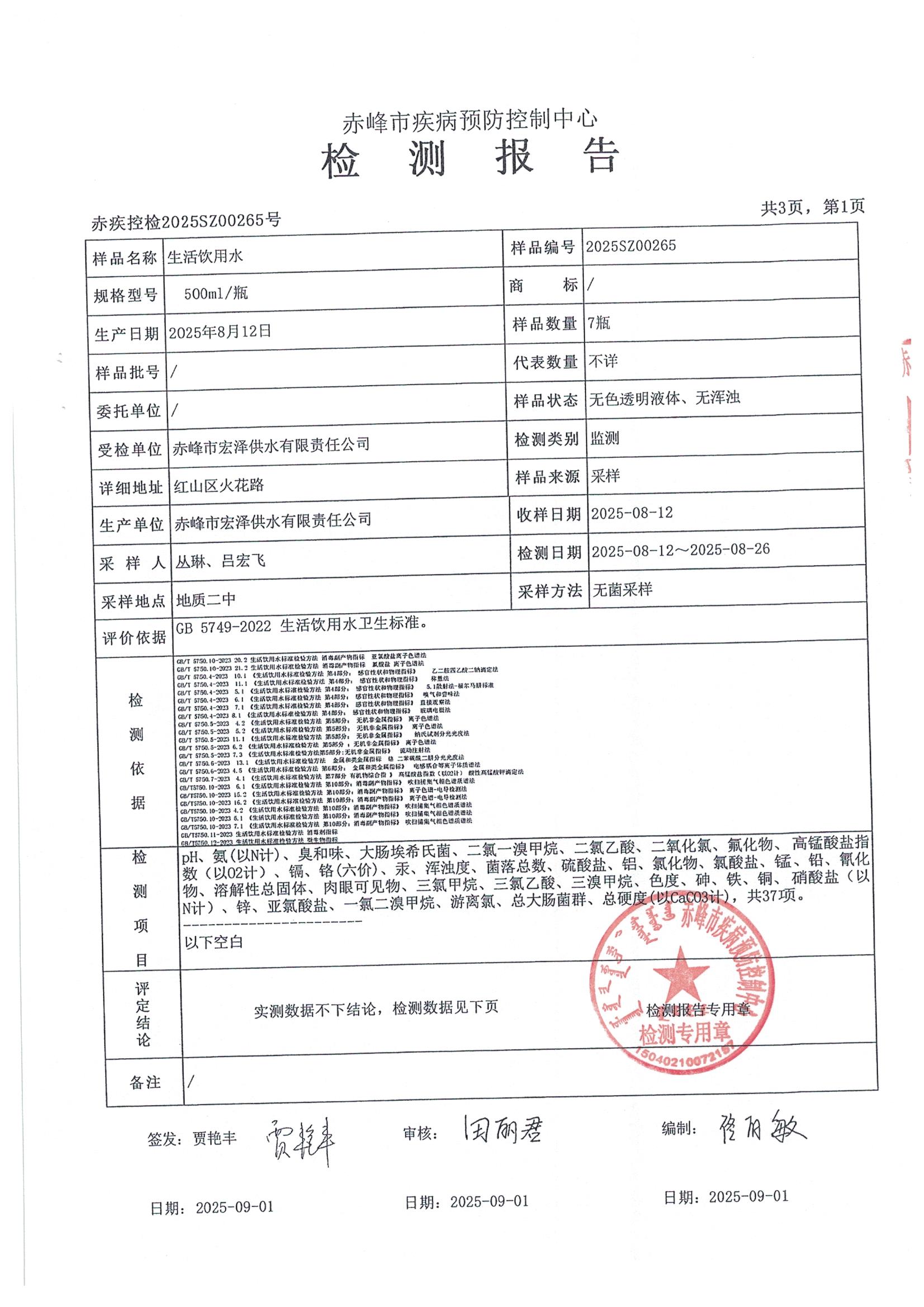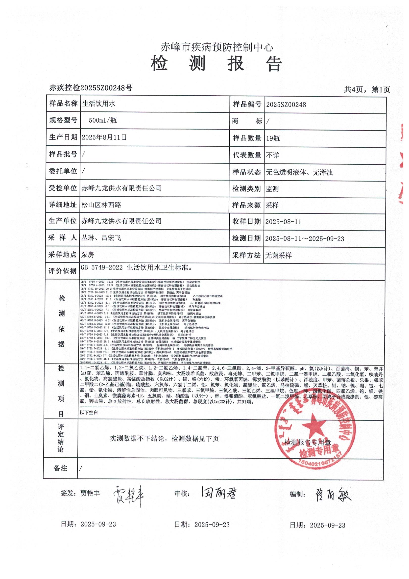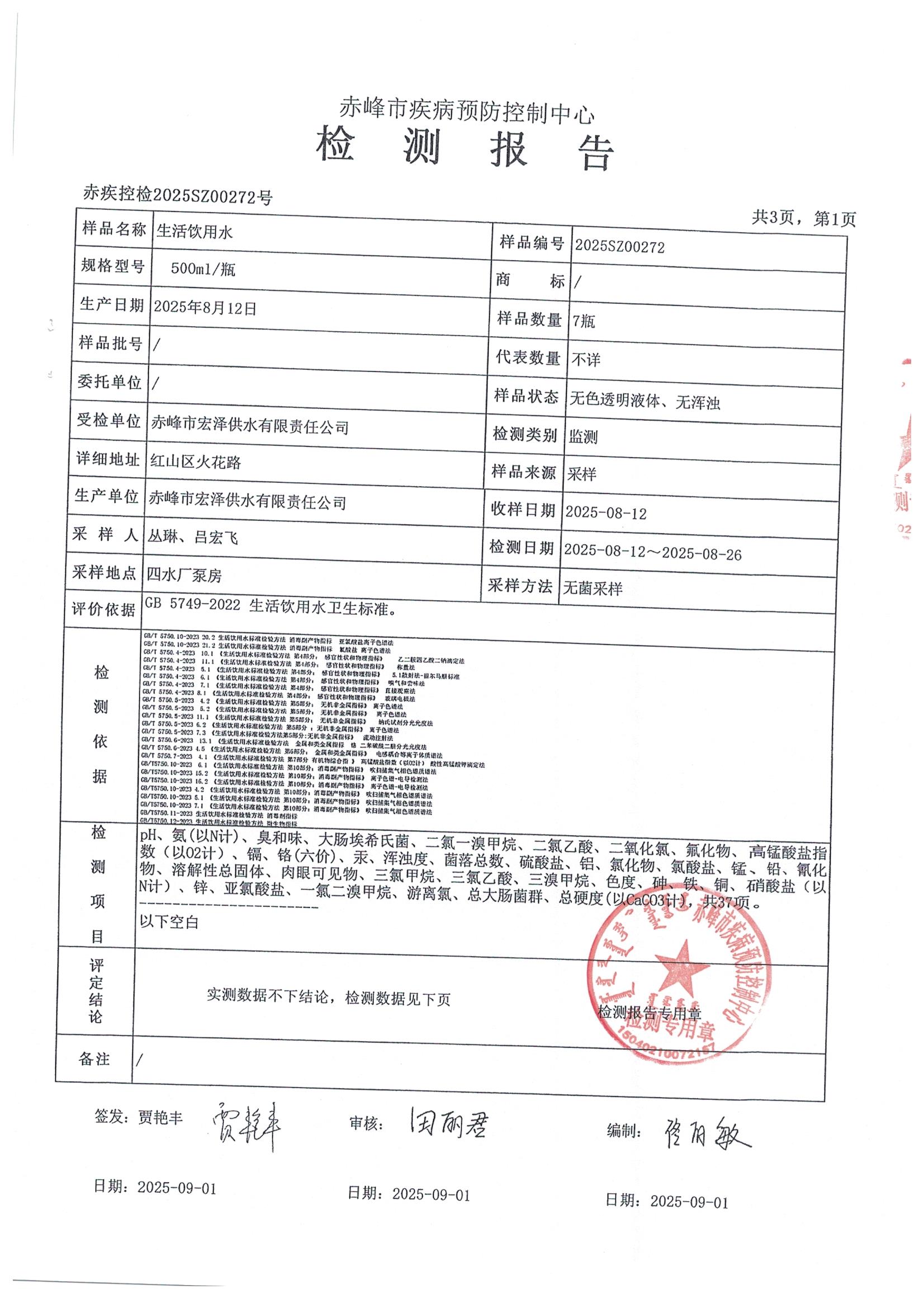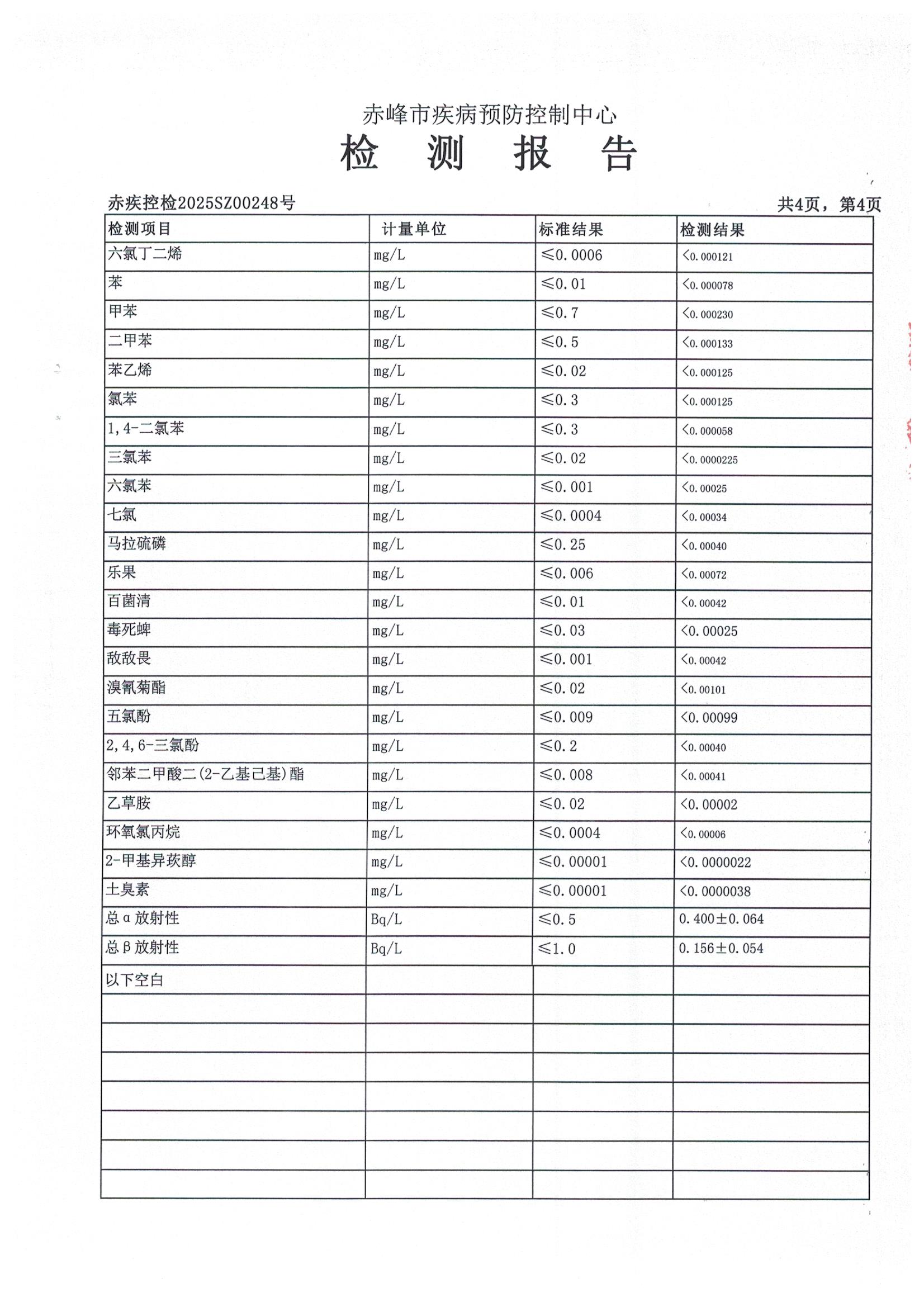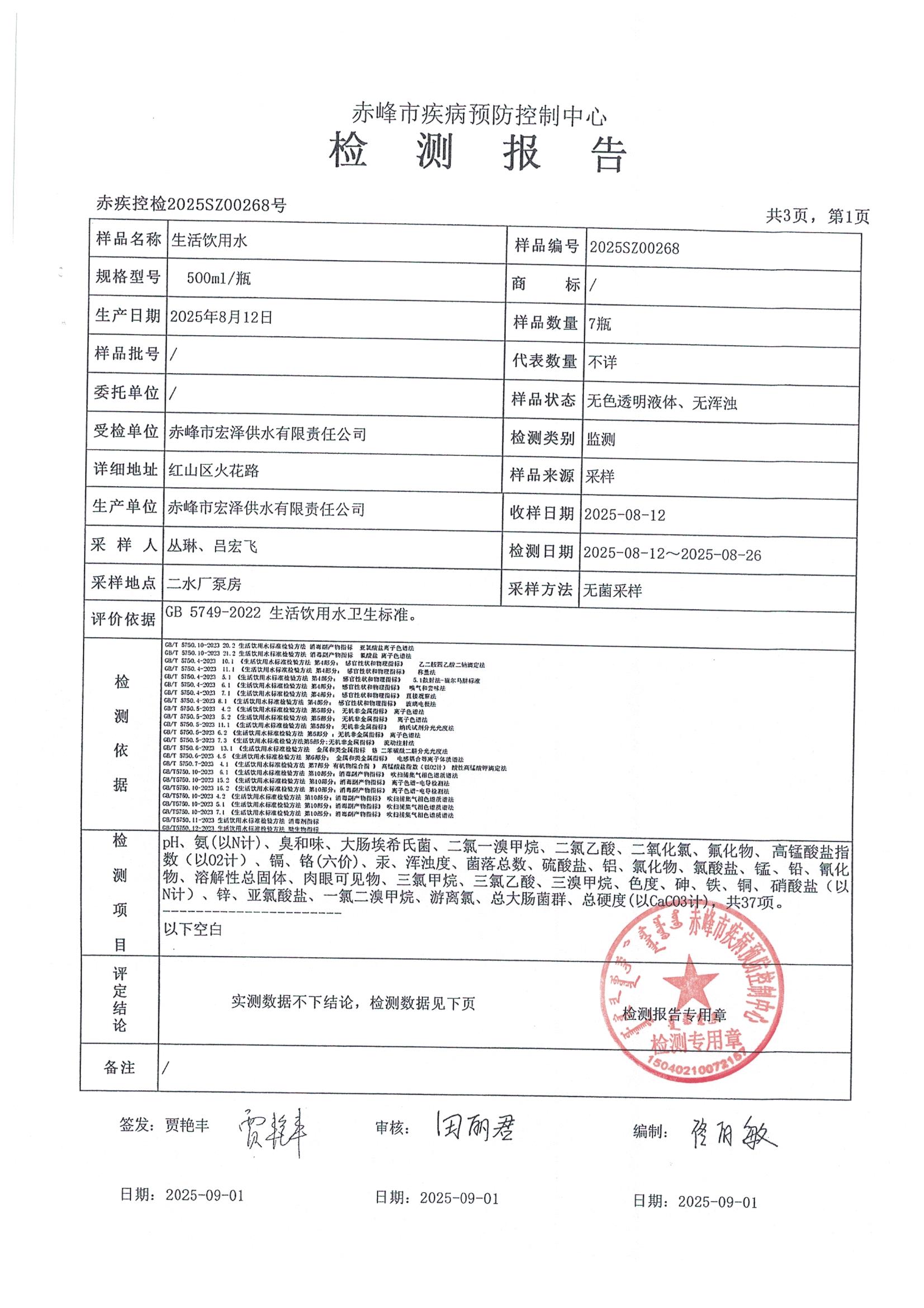 按照《赤峰市水污染防治工作方案》要求,现将赤峰市宏泽供水有限责任公司一水厂、二水厂、四水厂、赤峰九龙供水有限责任公司2025年第三季度生活饮用水水质检测结果予以公告。