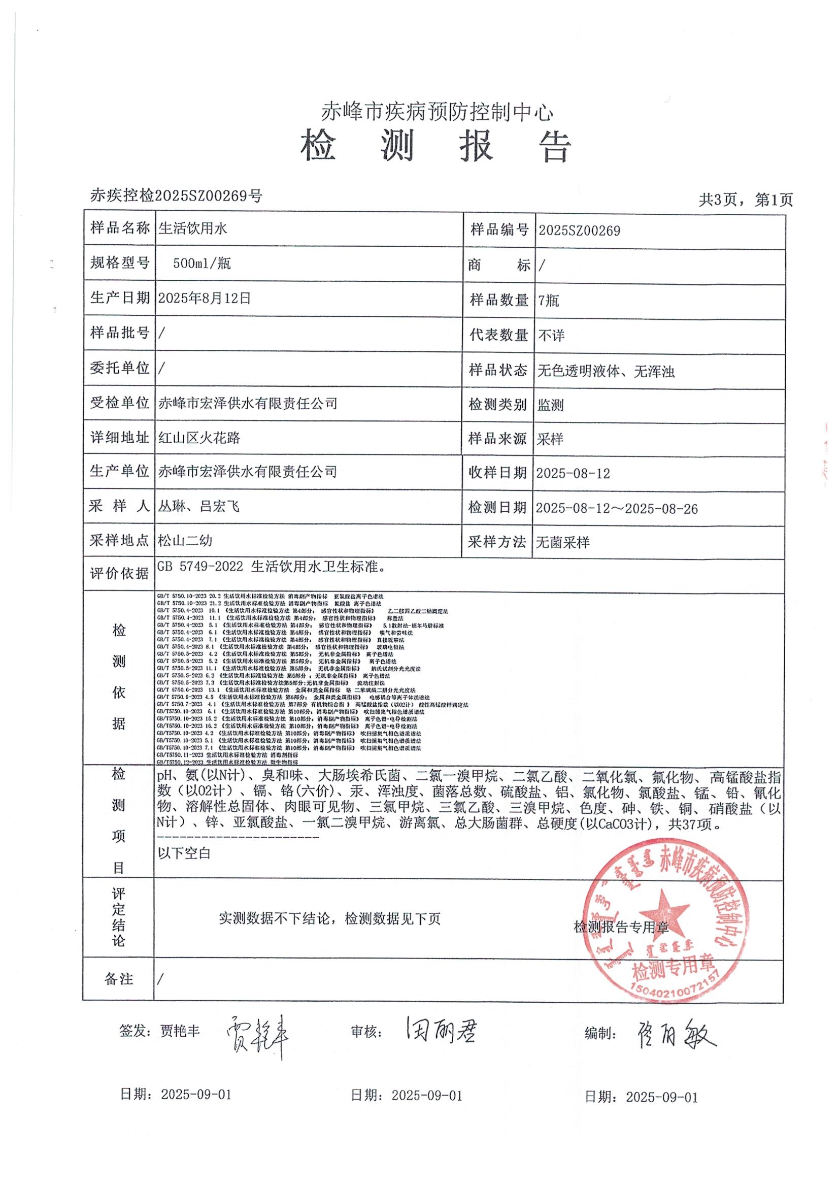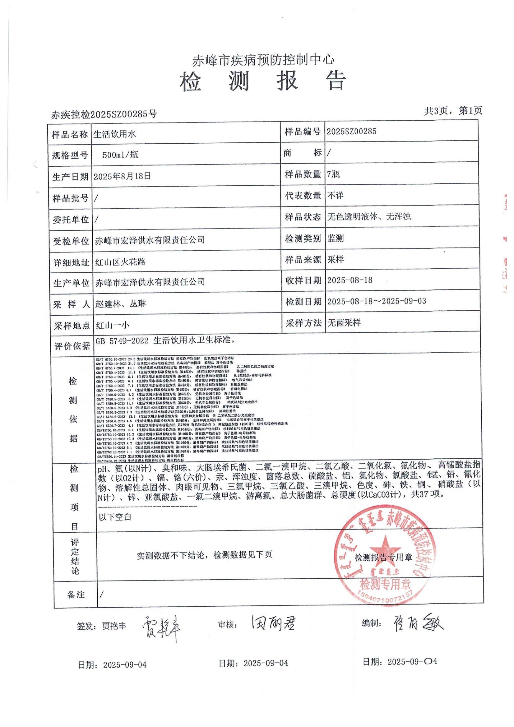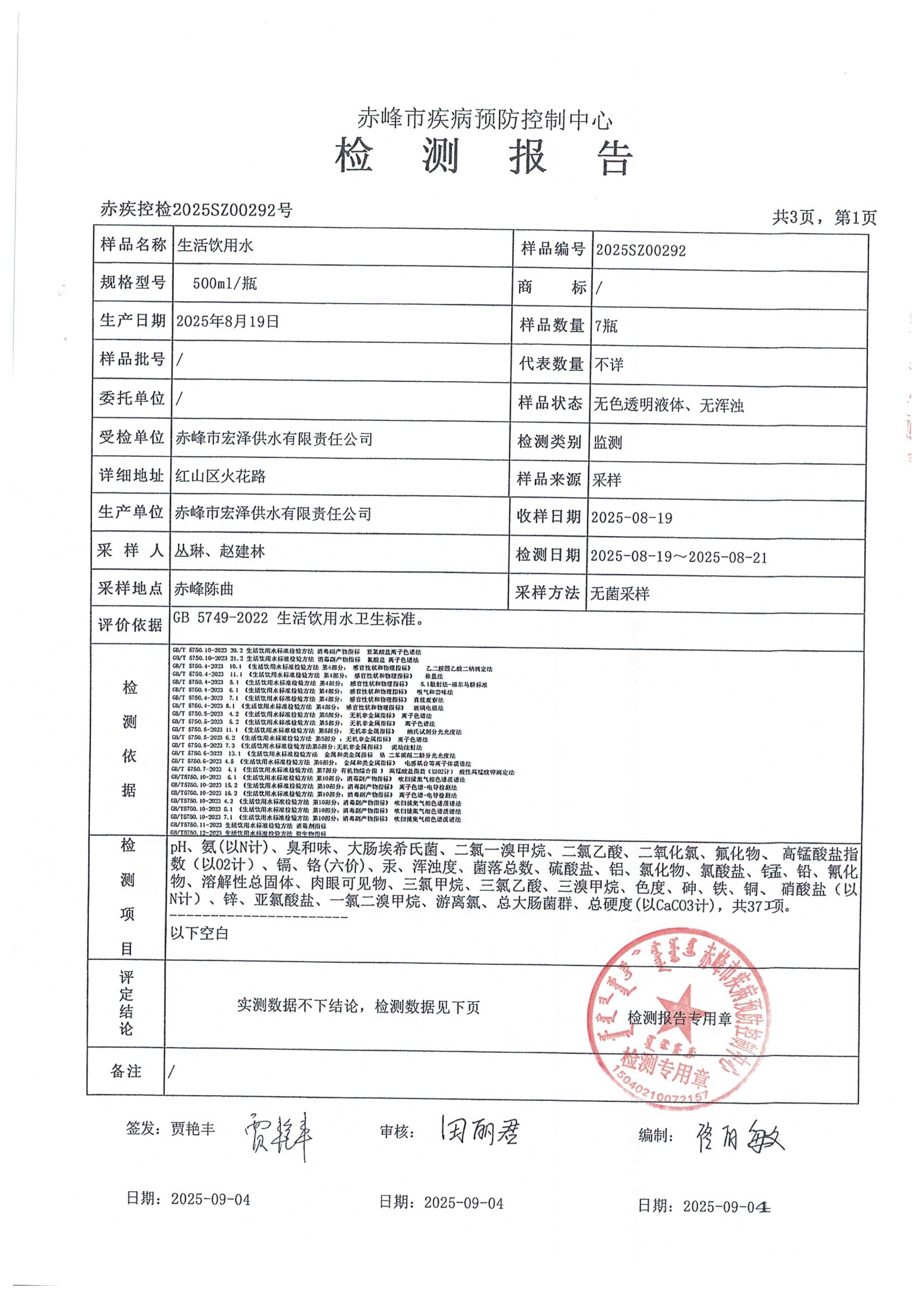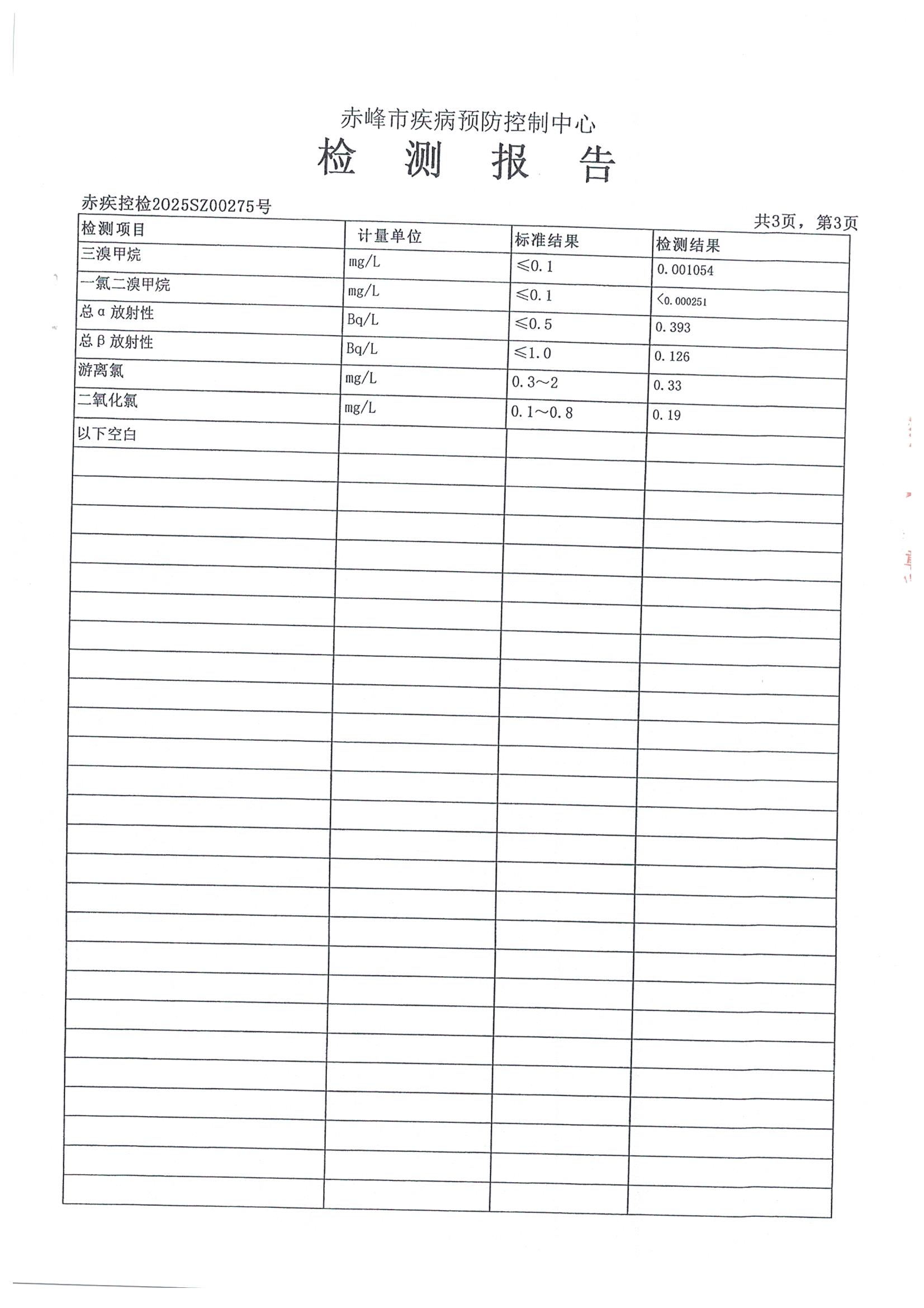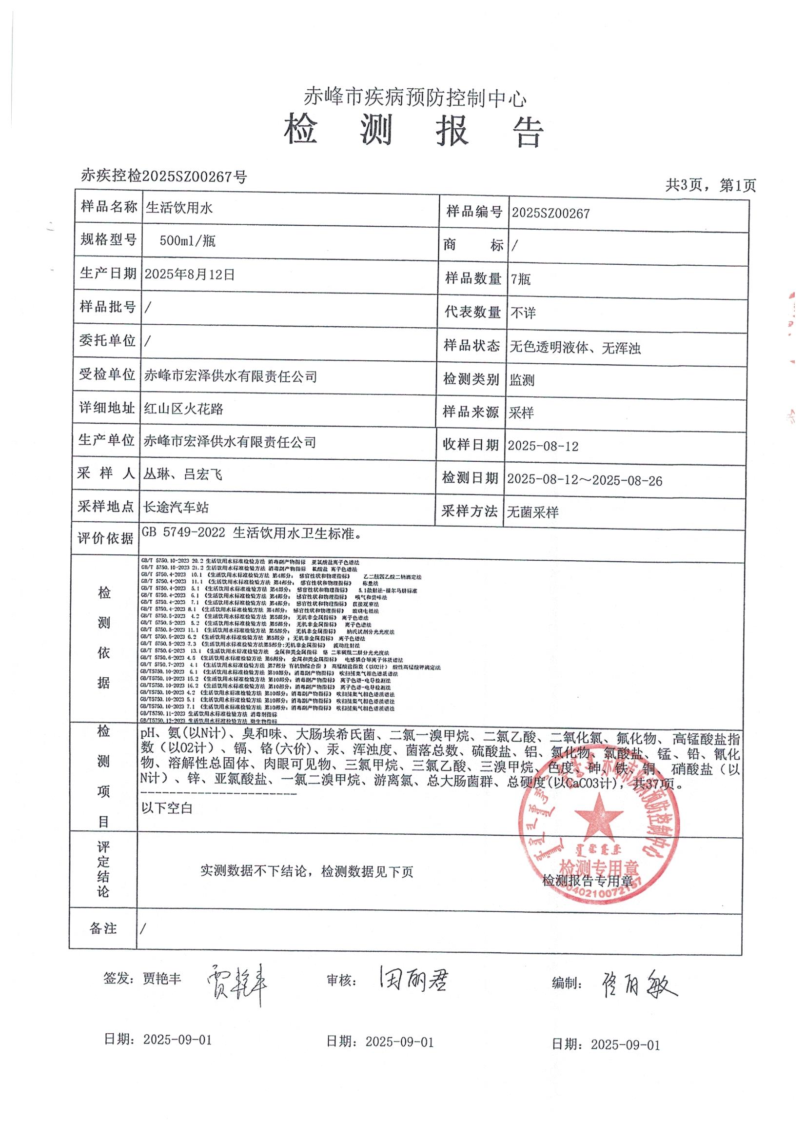 按照《赤峰市水污染防治工作方案》要求,现将赤峰市宏泽供水有限责任公司一水厂、二水厂、四水厂、赤峰九龙供水有限责任公司2025年第三季度生活饮用水水质检测结果予以公告。