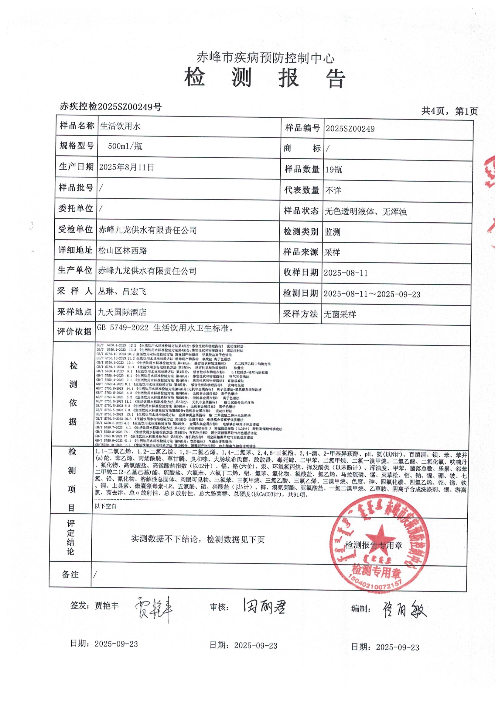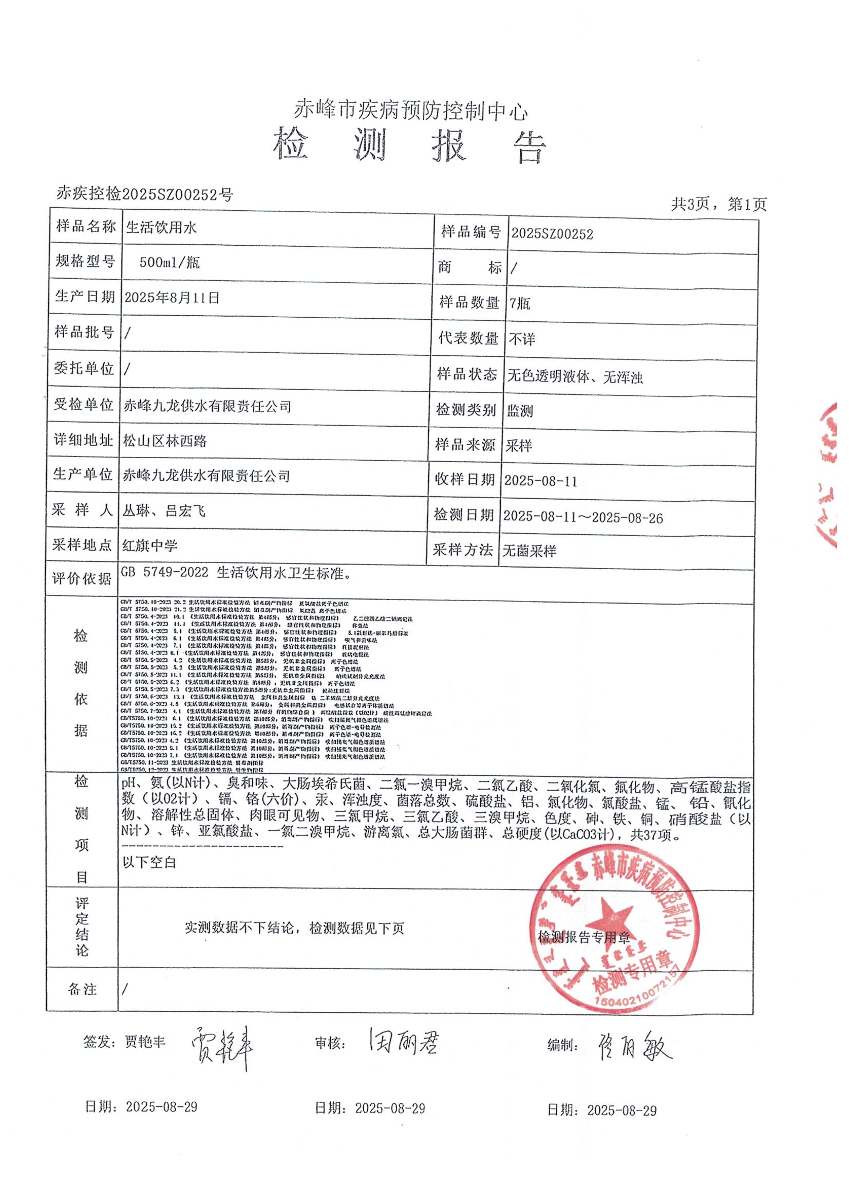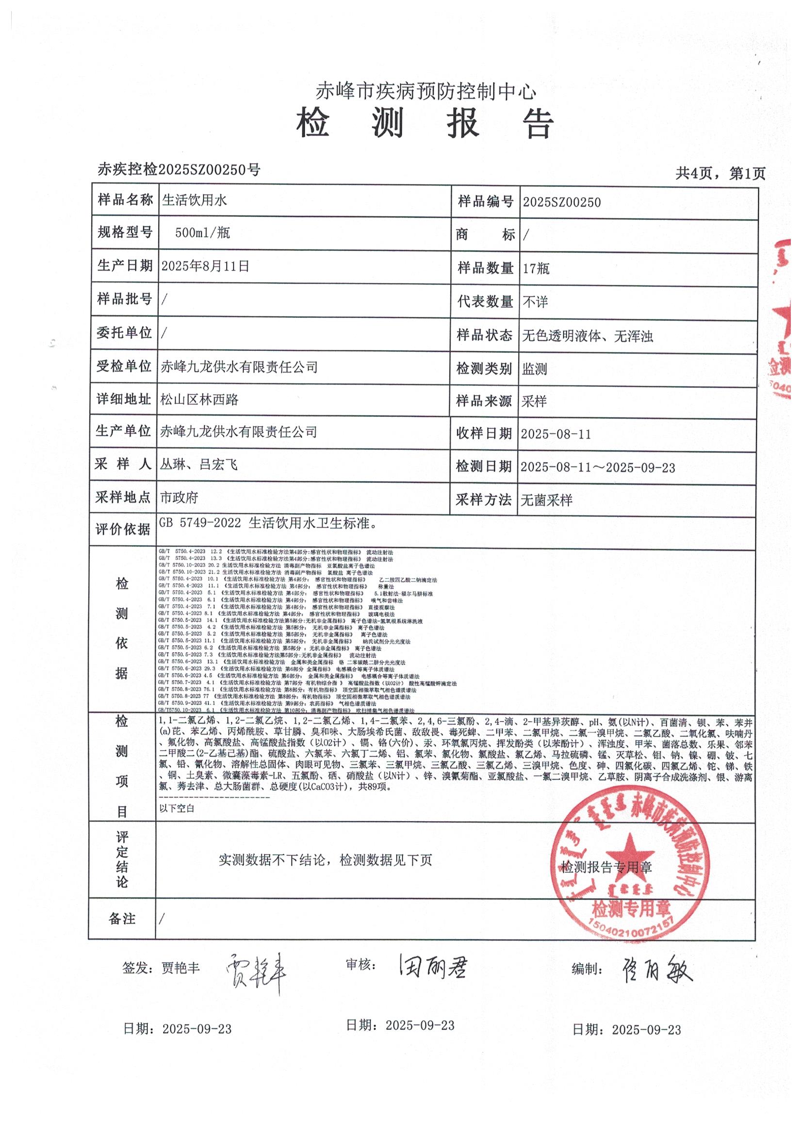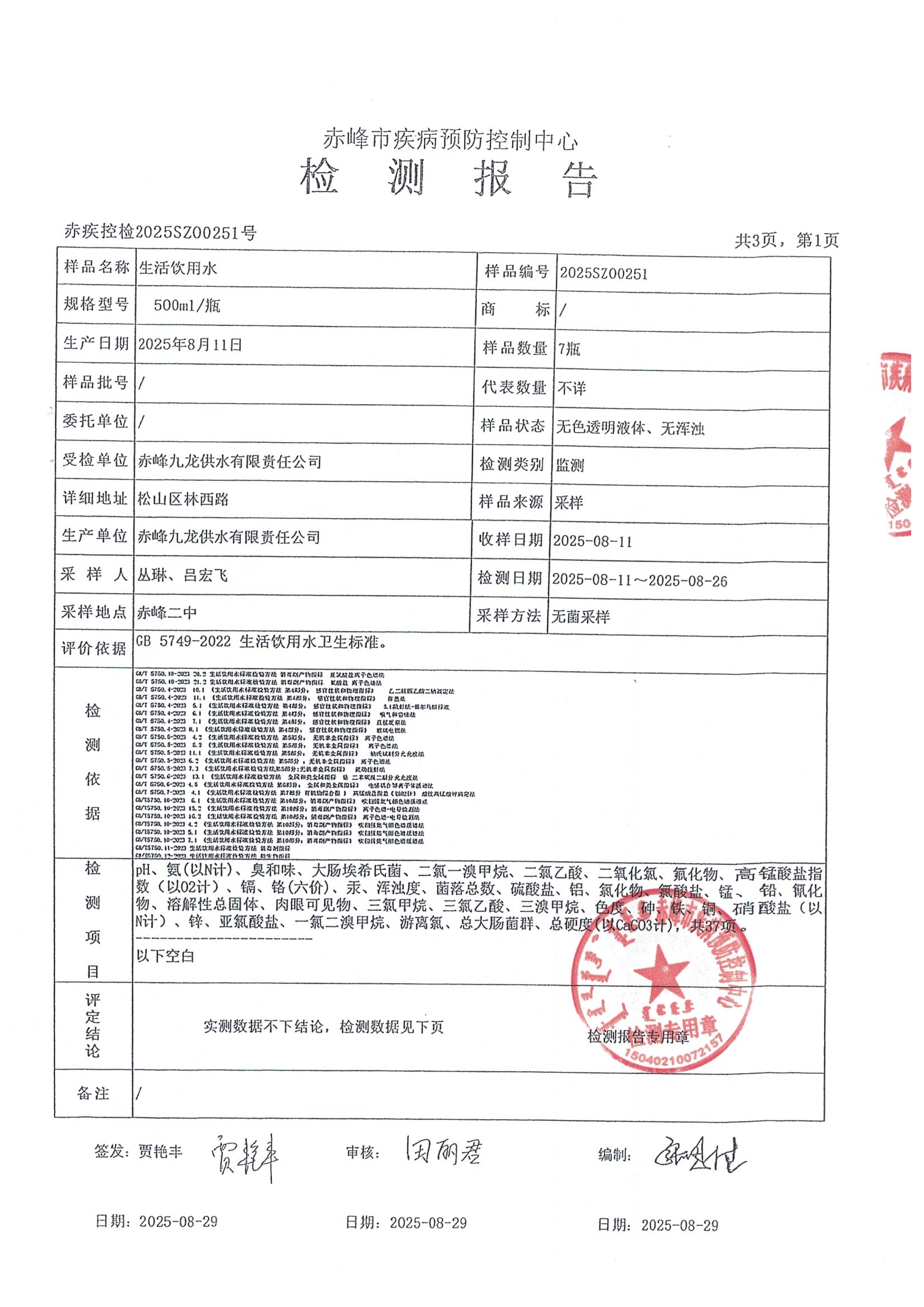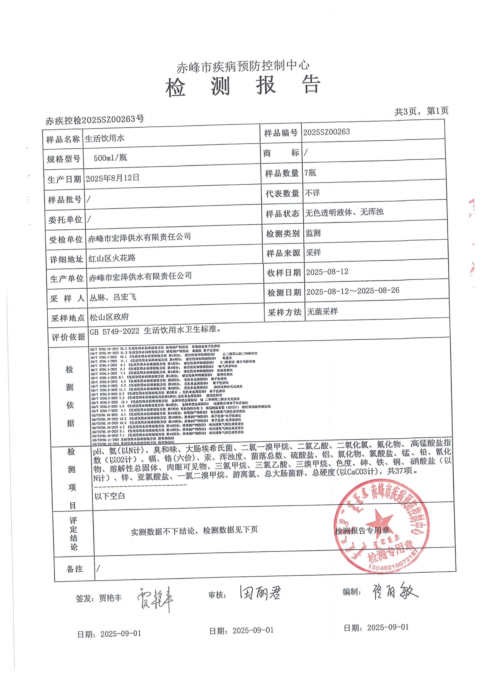 按照《赤峰市水污染防治工作方案》要求,现将赤峰市宏泽供水有限责任公司一水厂、二水厂、四水厂、赤峰九龙供水有限责任公司2025年第三季度生活饮用水水质检测结果予以公告。