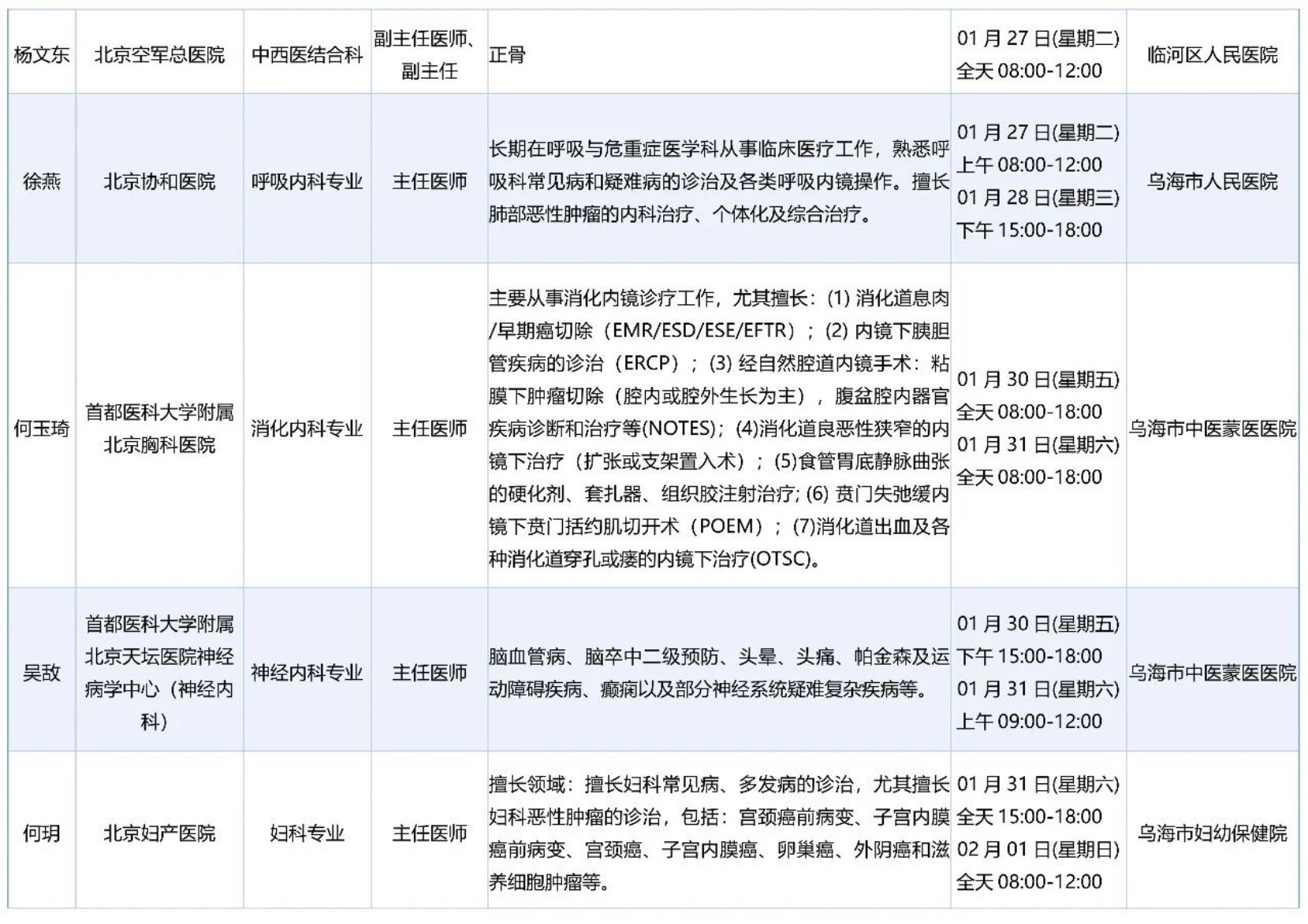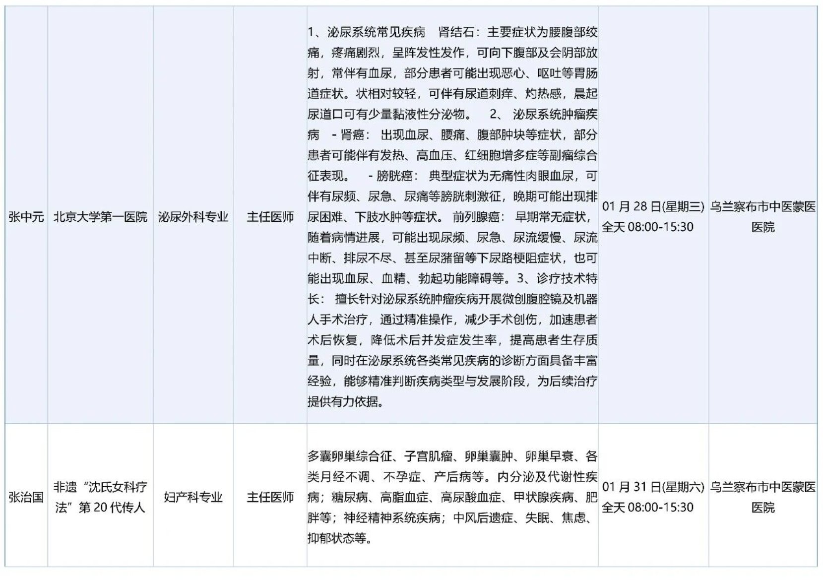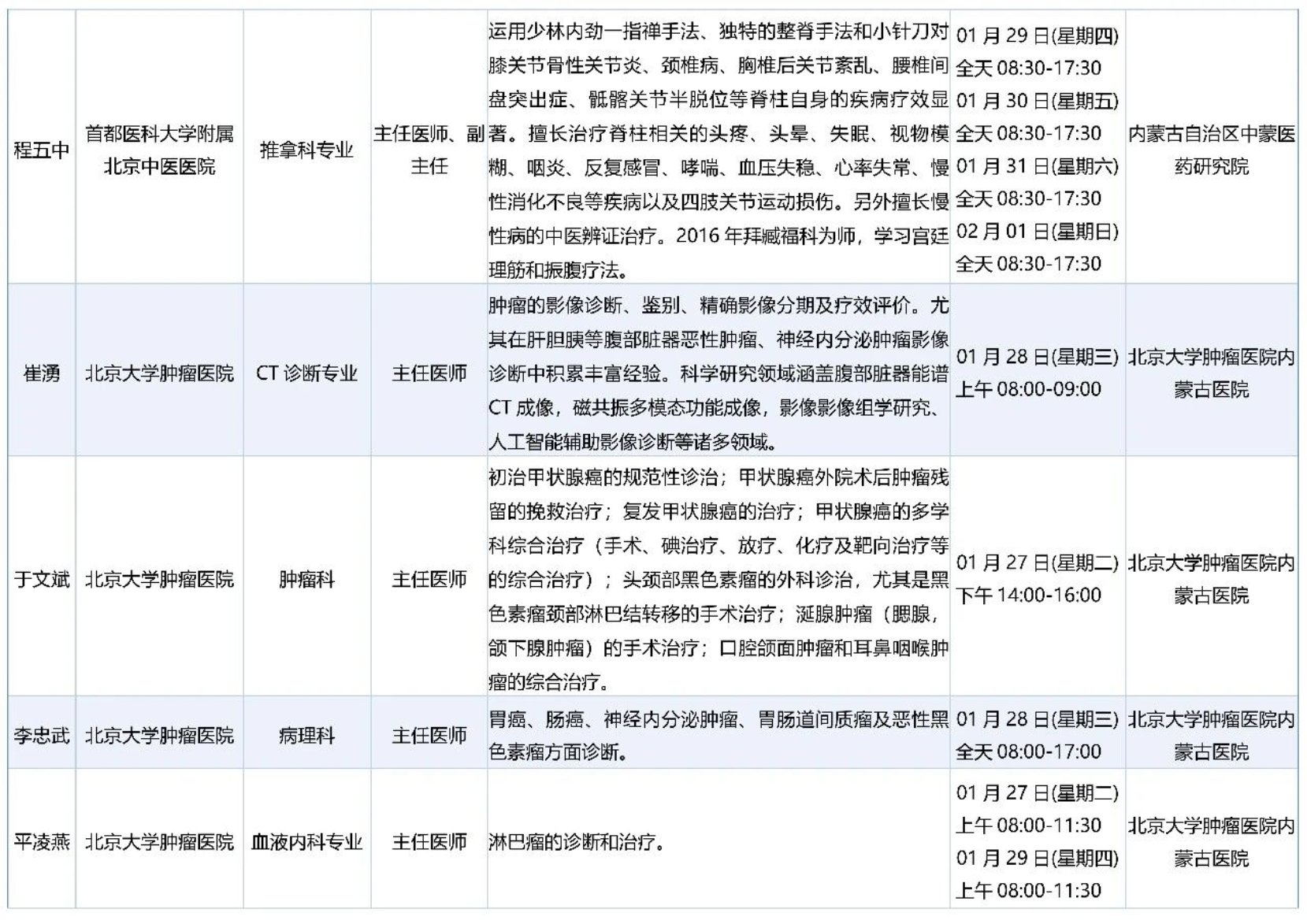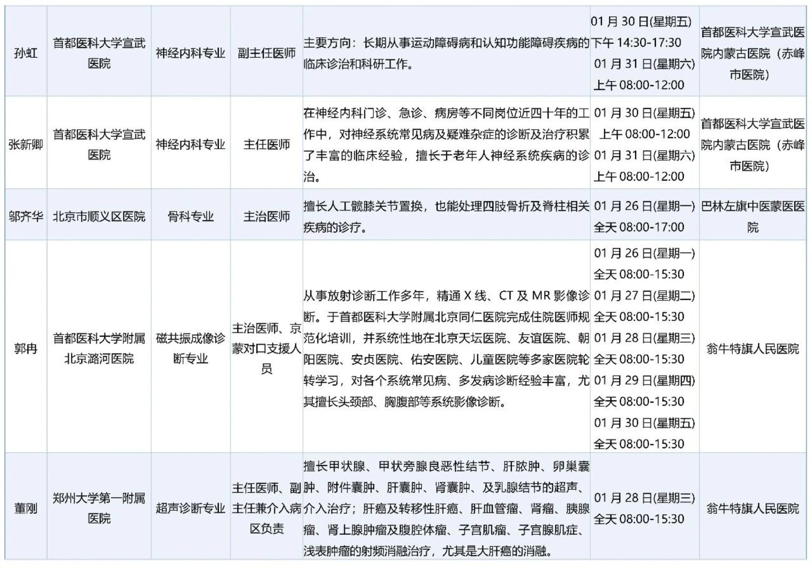 跨区域医疗协作-内蒙古引进优质医疗资源专家诊疗信息