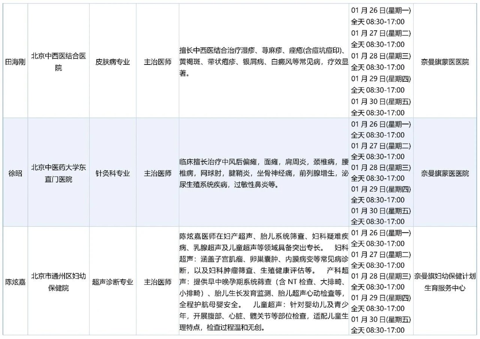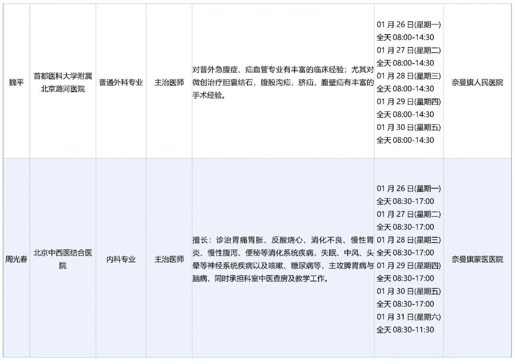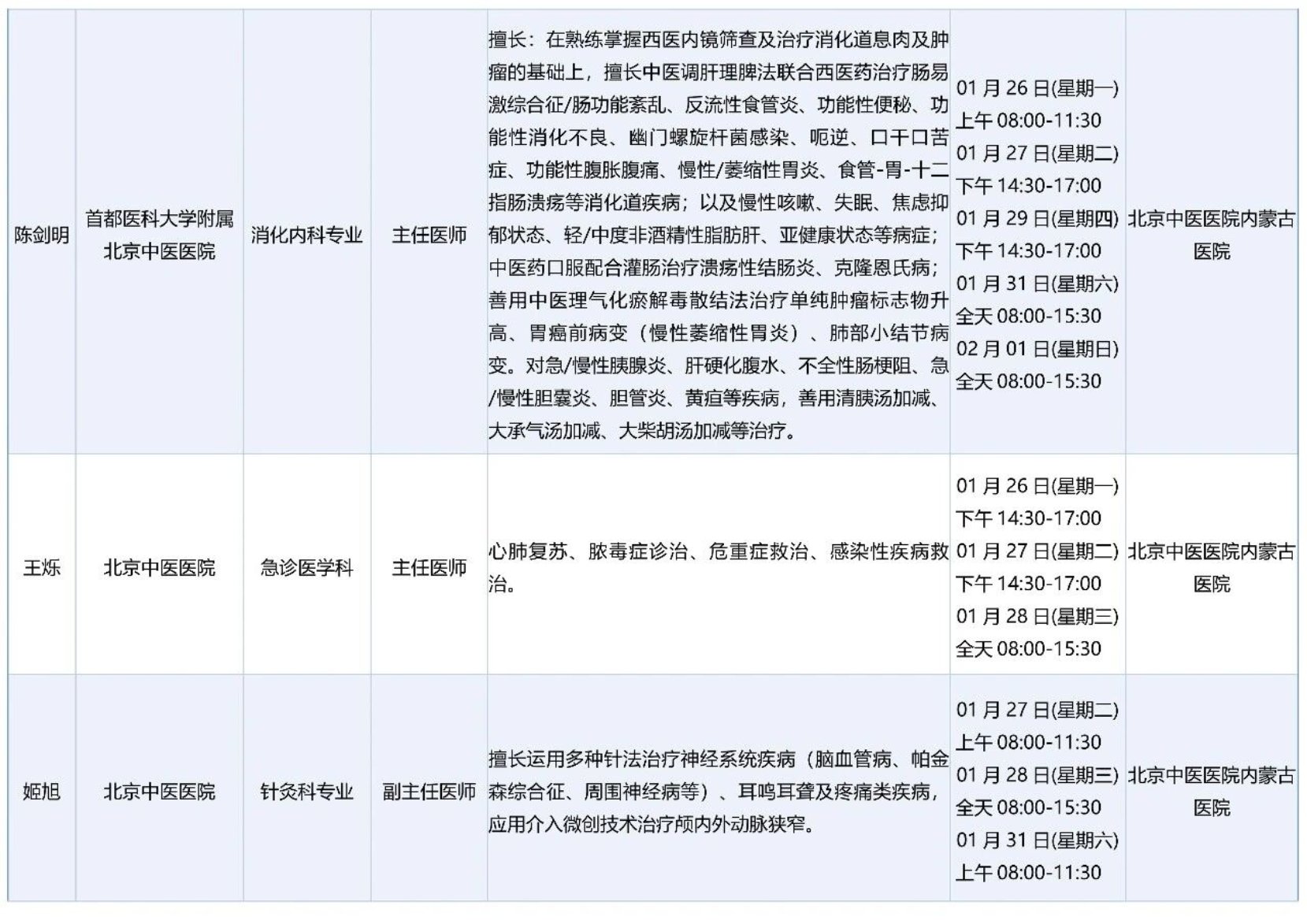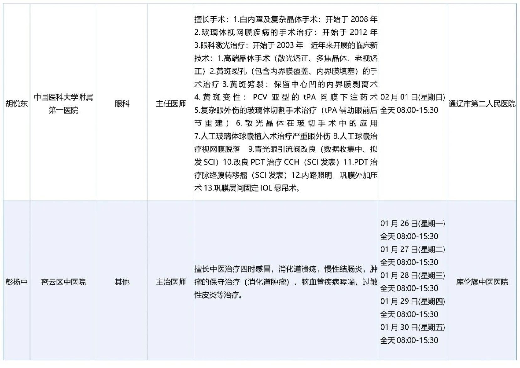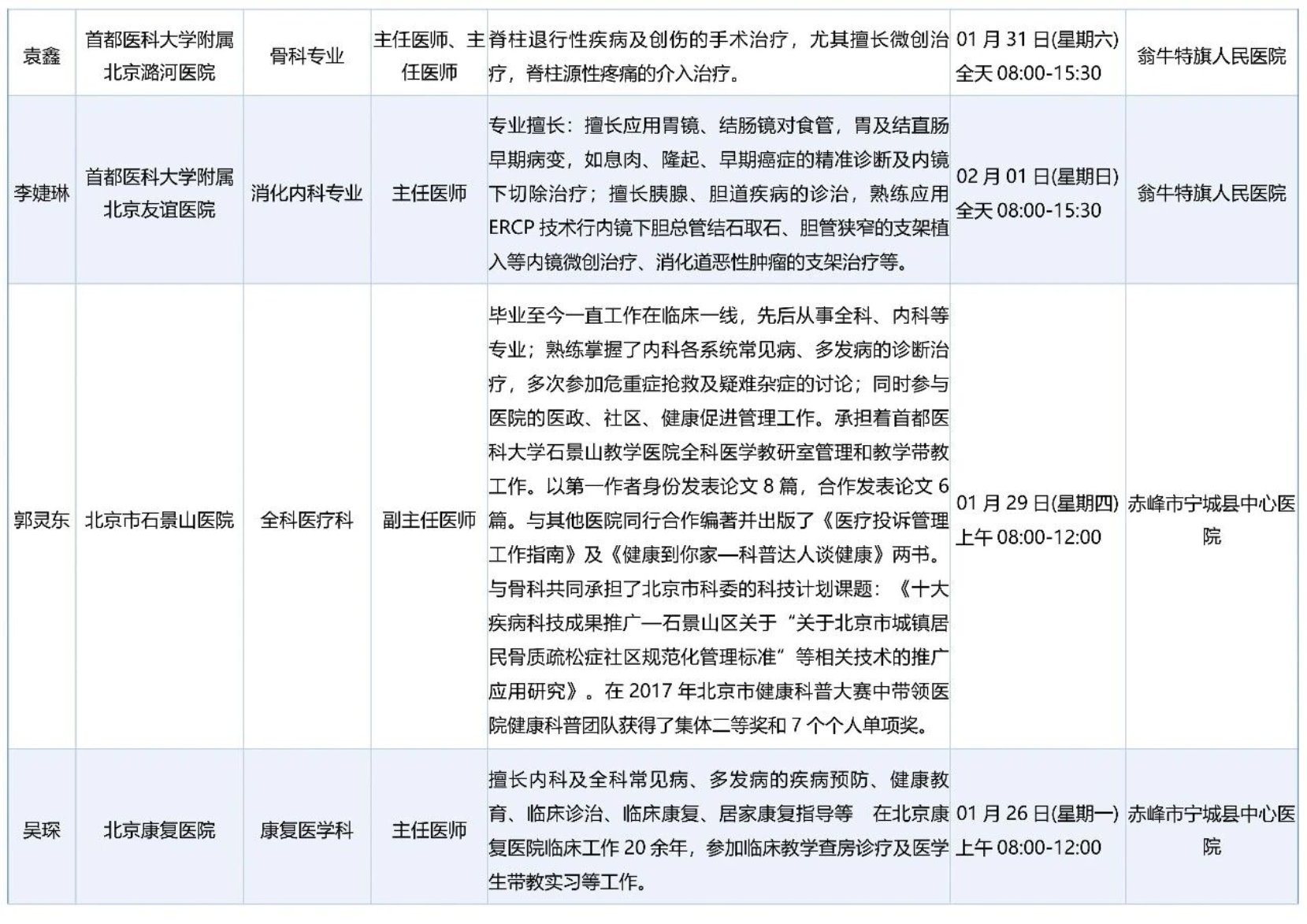 跨区域医疗协作-内蒙古引进优质医疗资源专家诊疗信息
