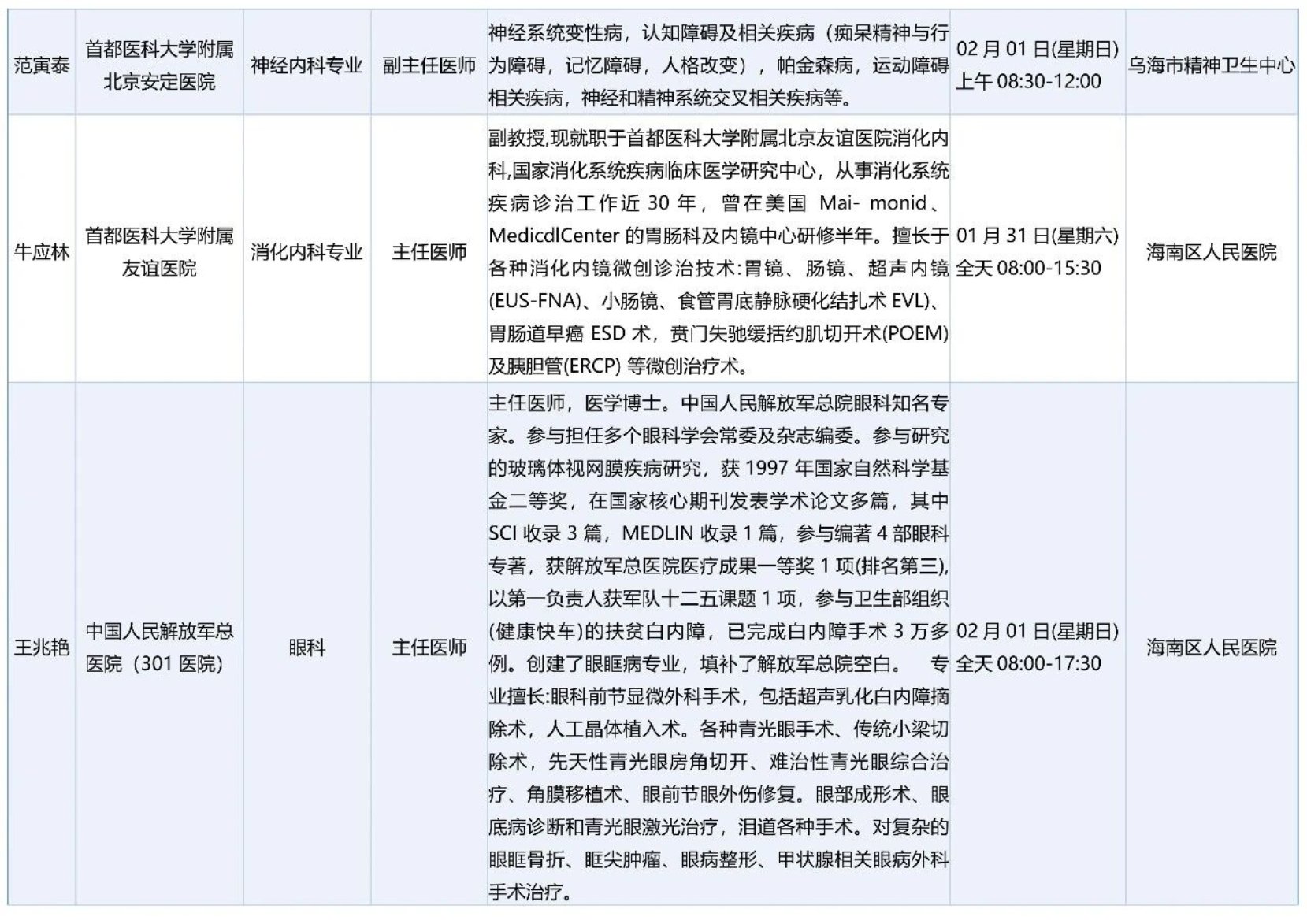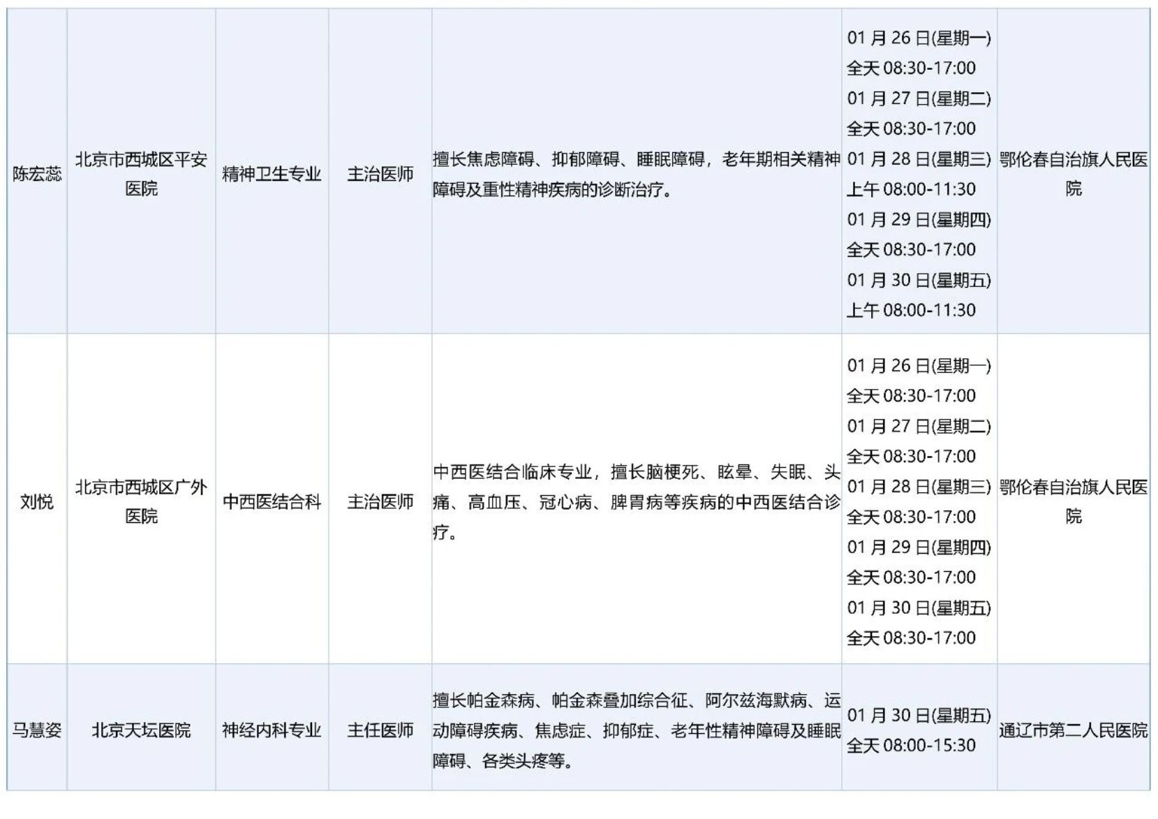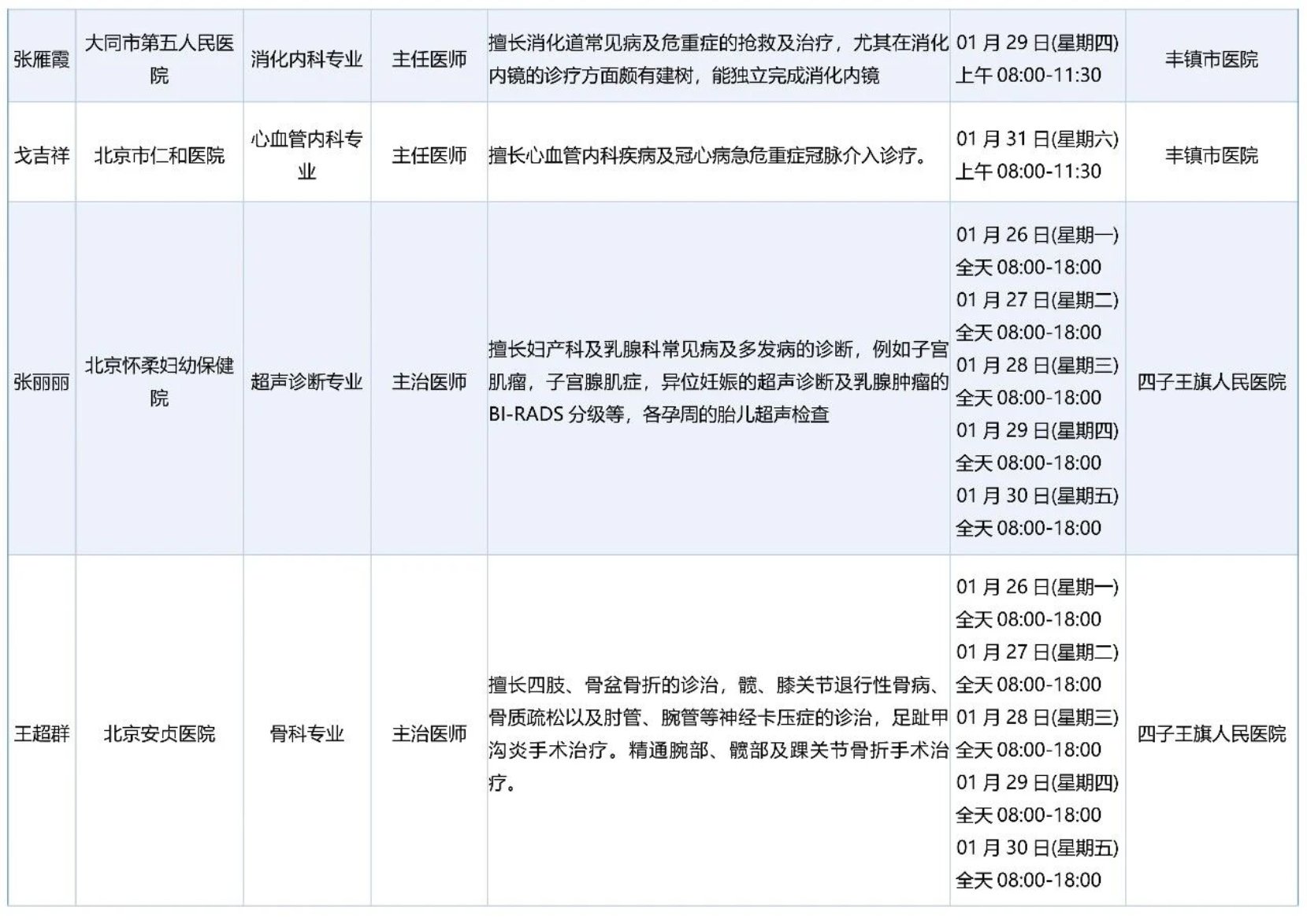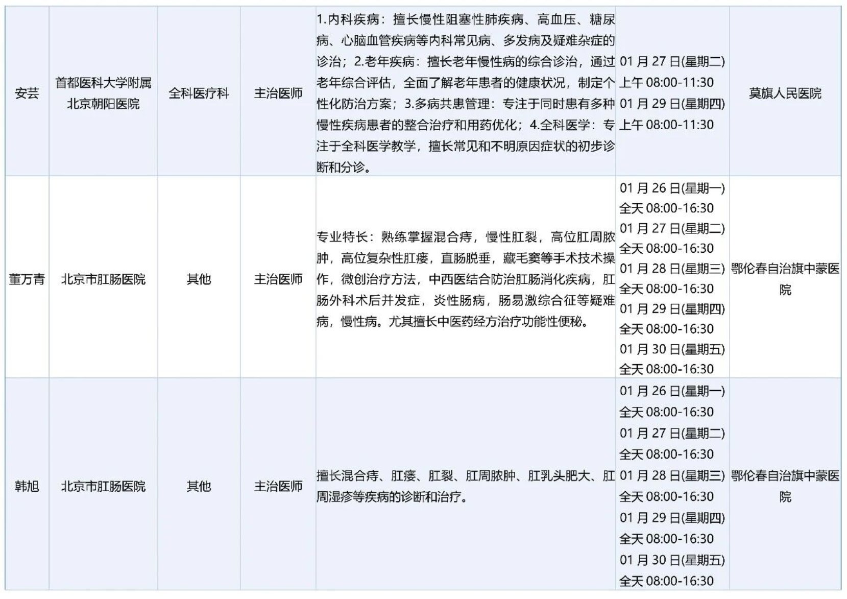 跨区域医疗协作-内蒙古引进优质医疗资源专家诊疗信息