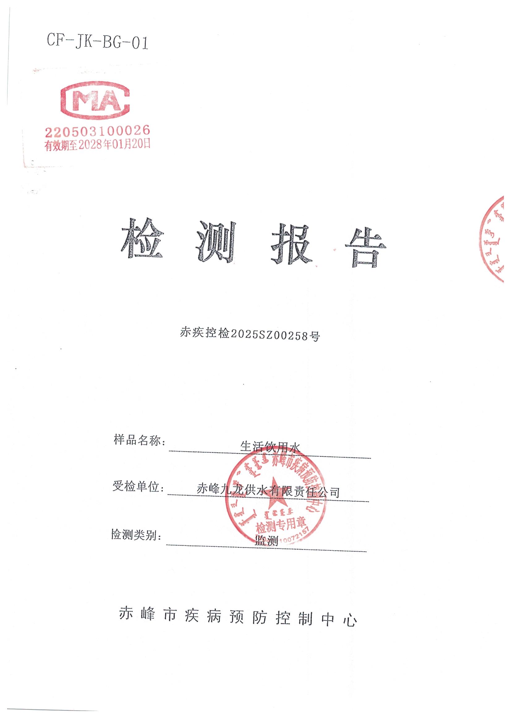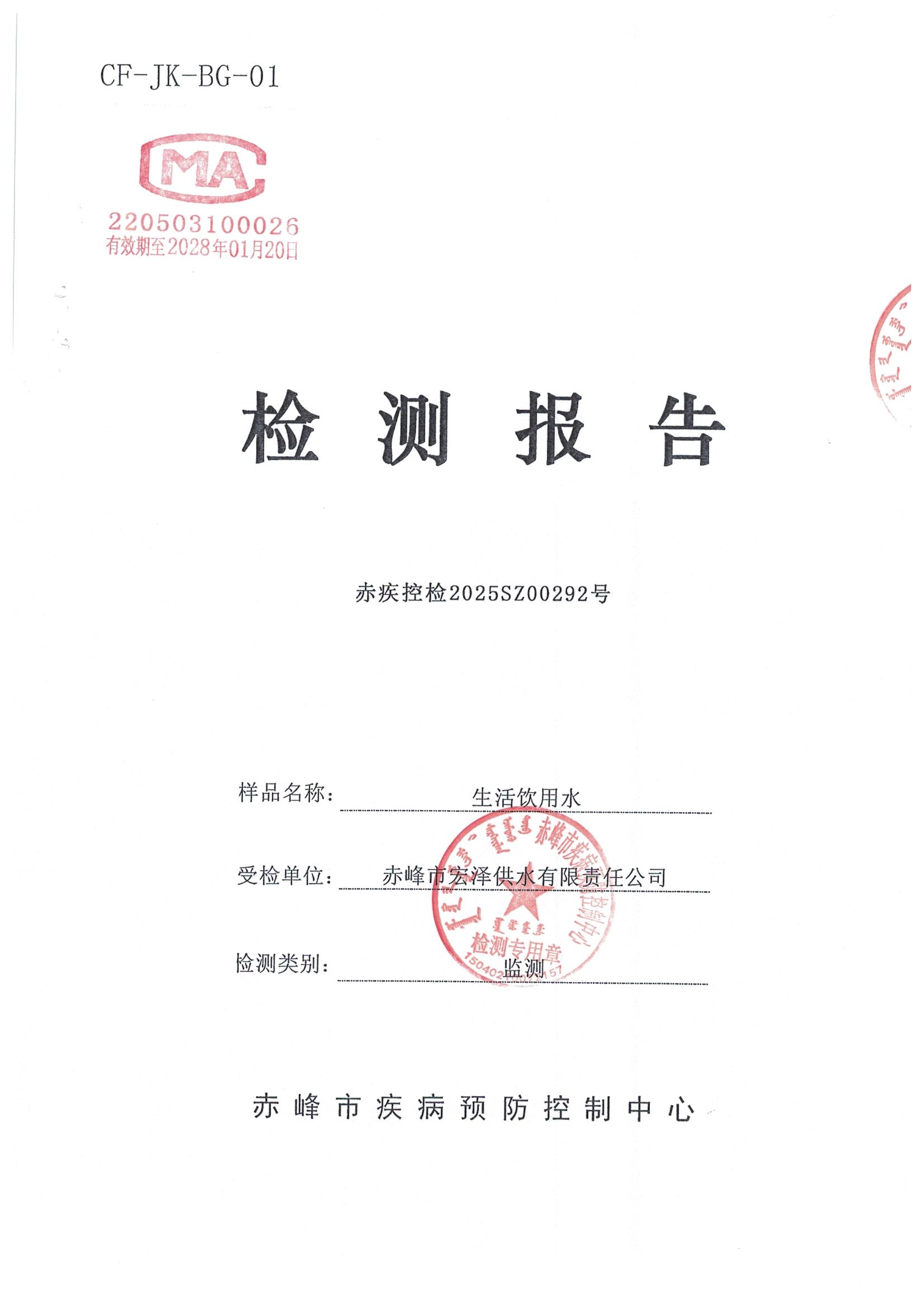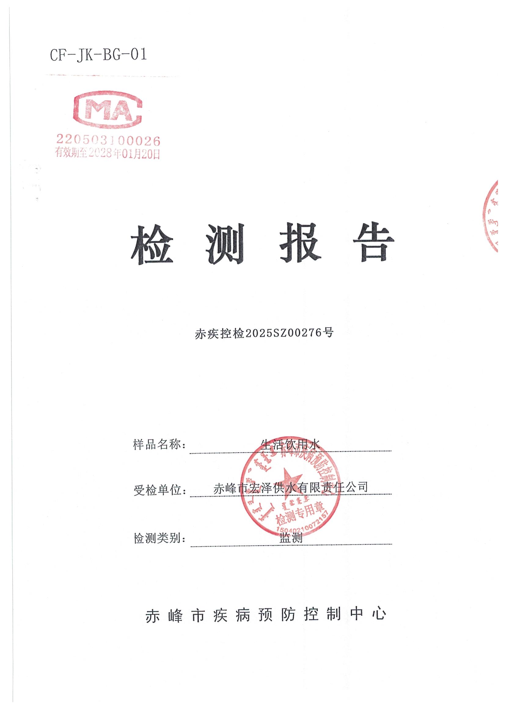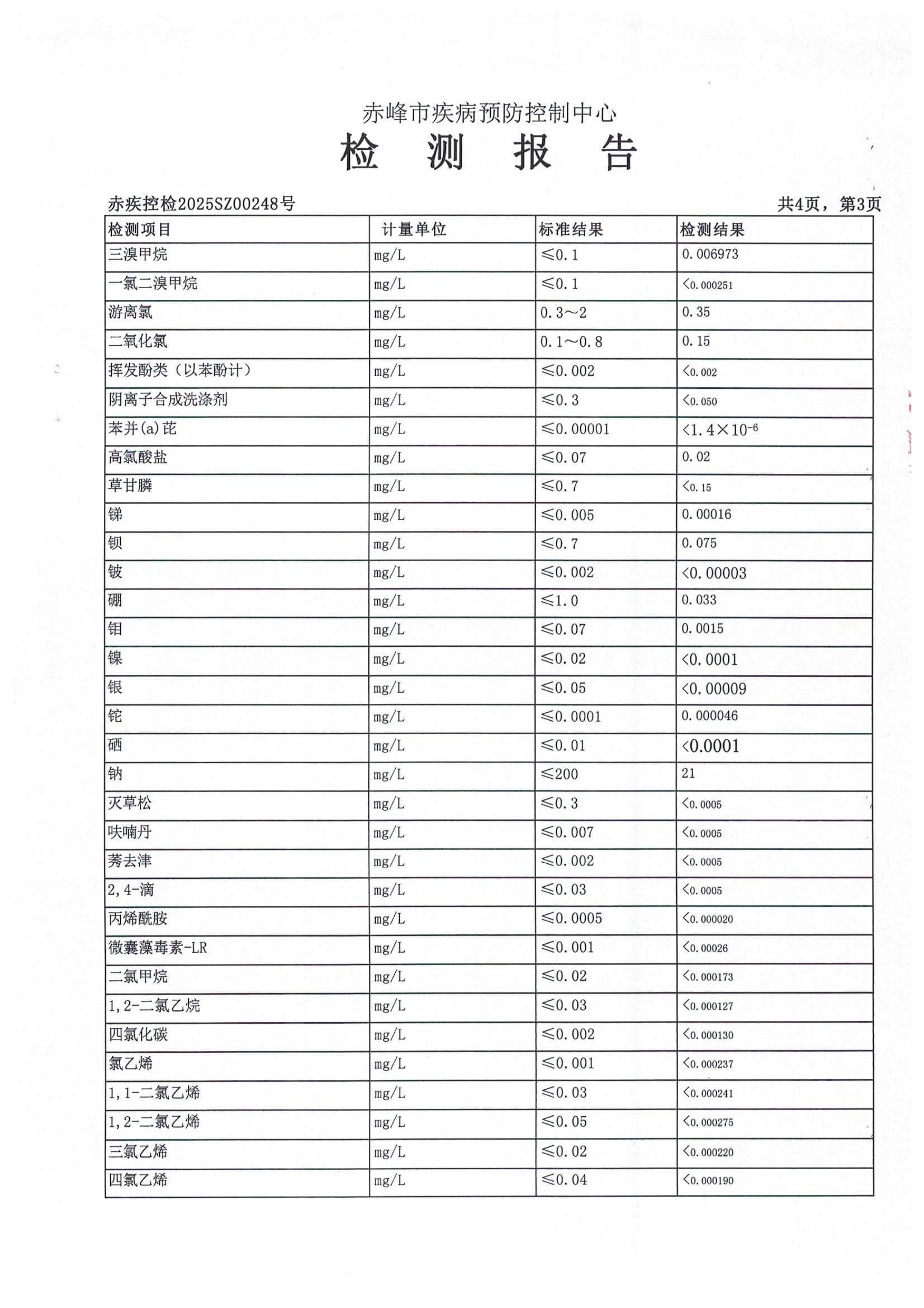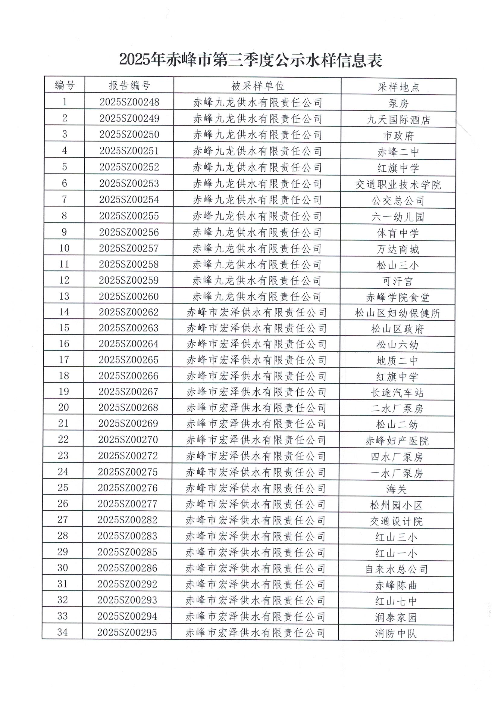 按照《赤峰市水污染防治工作方案》要求,现将赤峰市宏泽供水有限责任公司一水厂、二水厂、四水厂、赤峰九龙供水有限责任公司2025年第三季度生活饮用水水质检测结果予以公告。