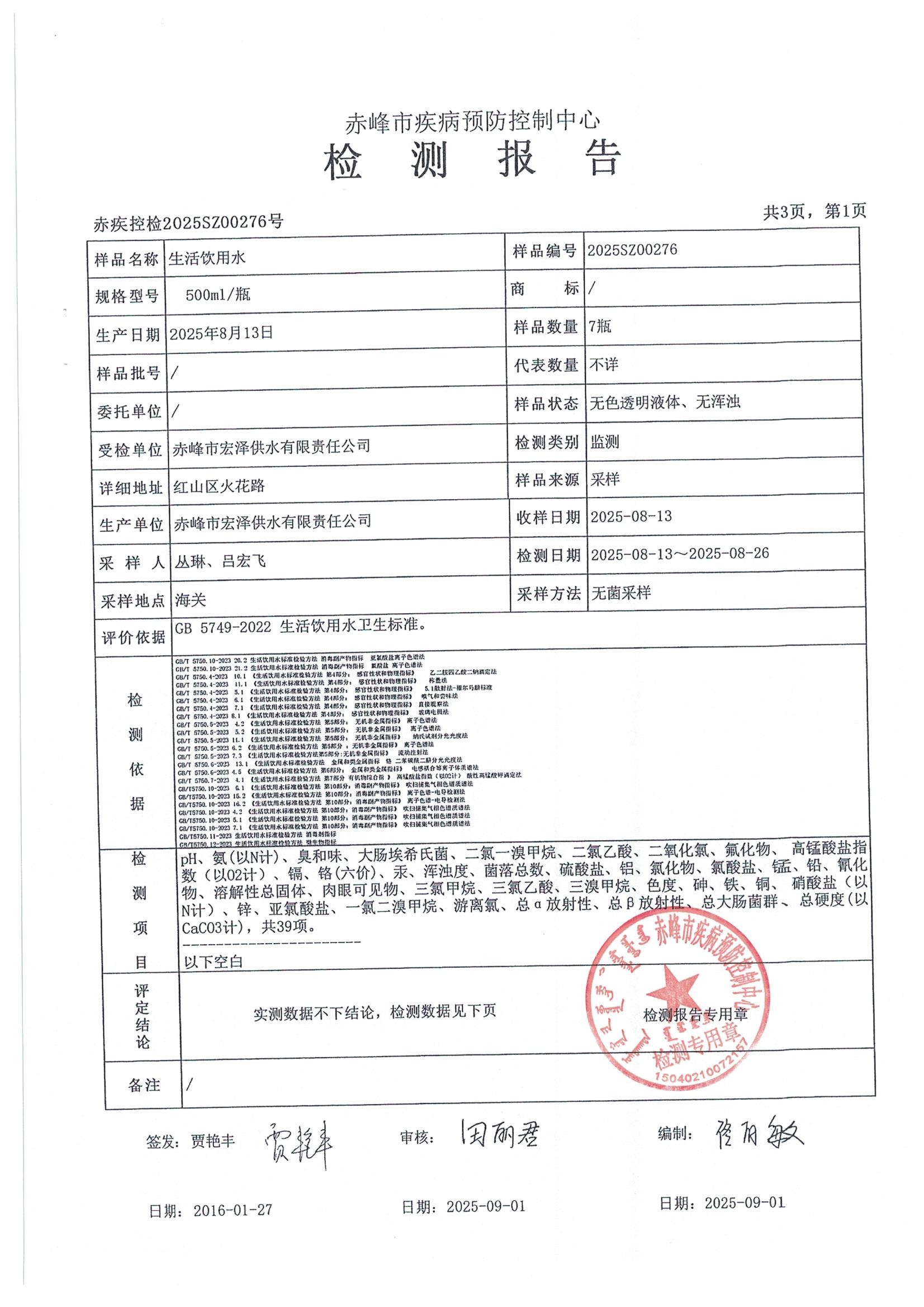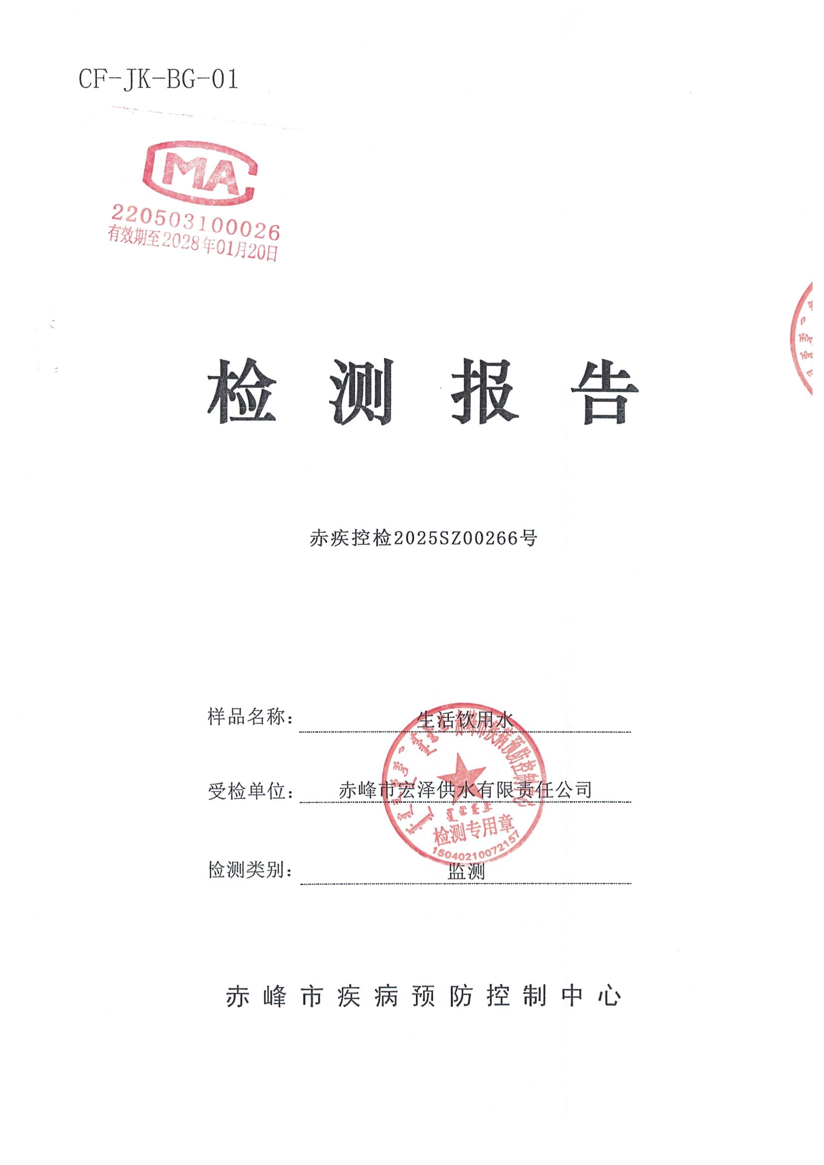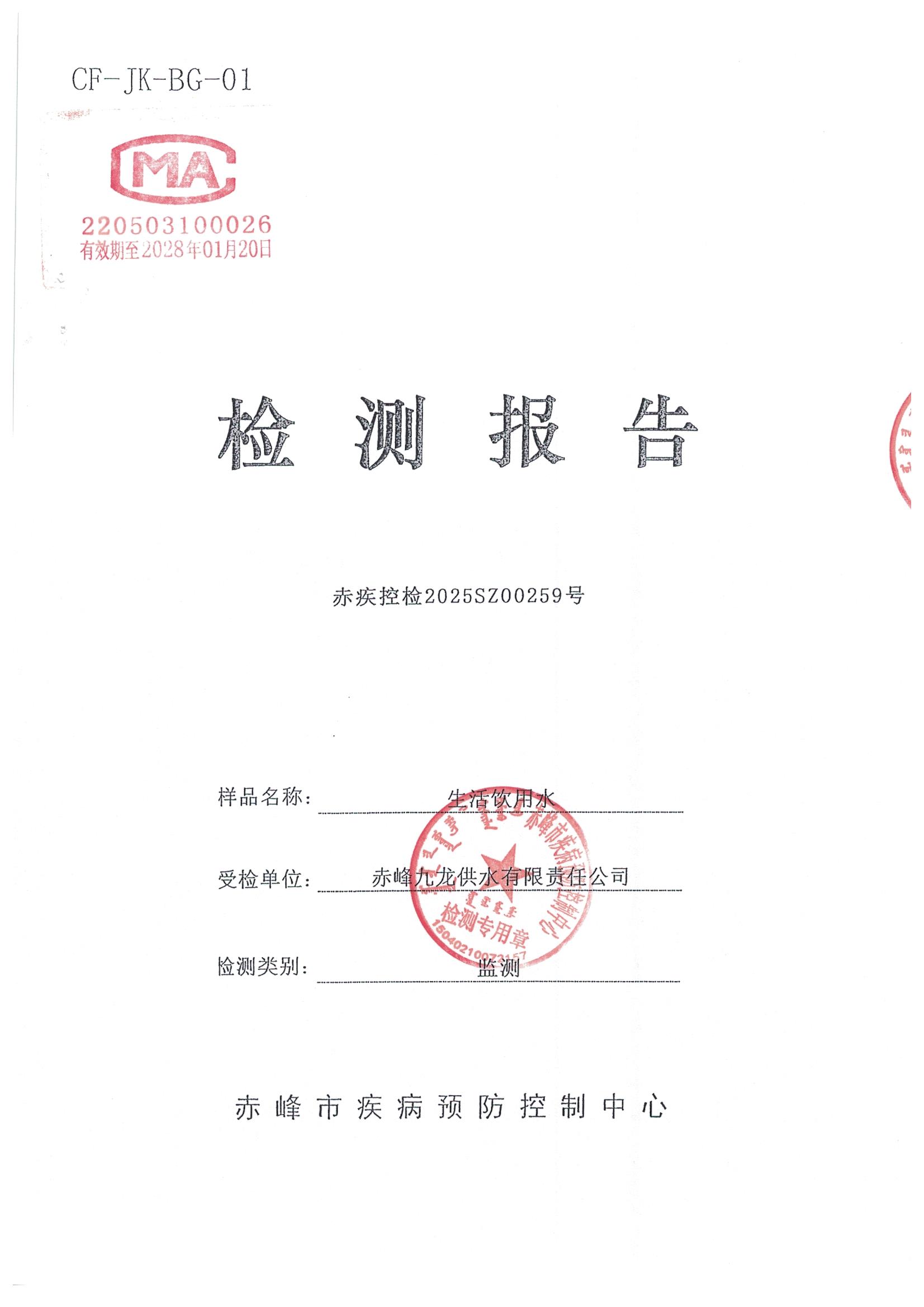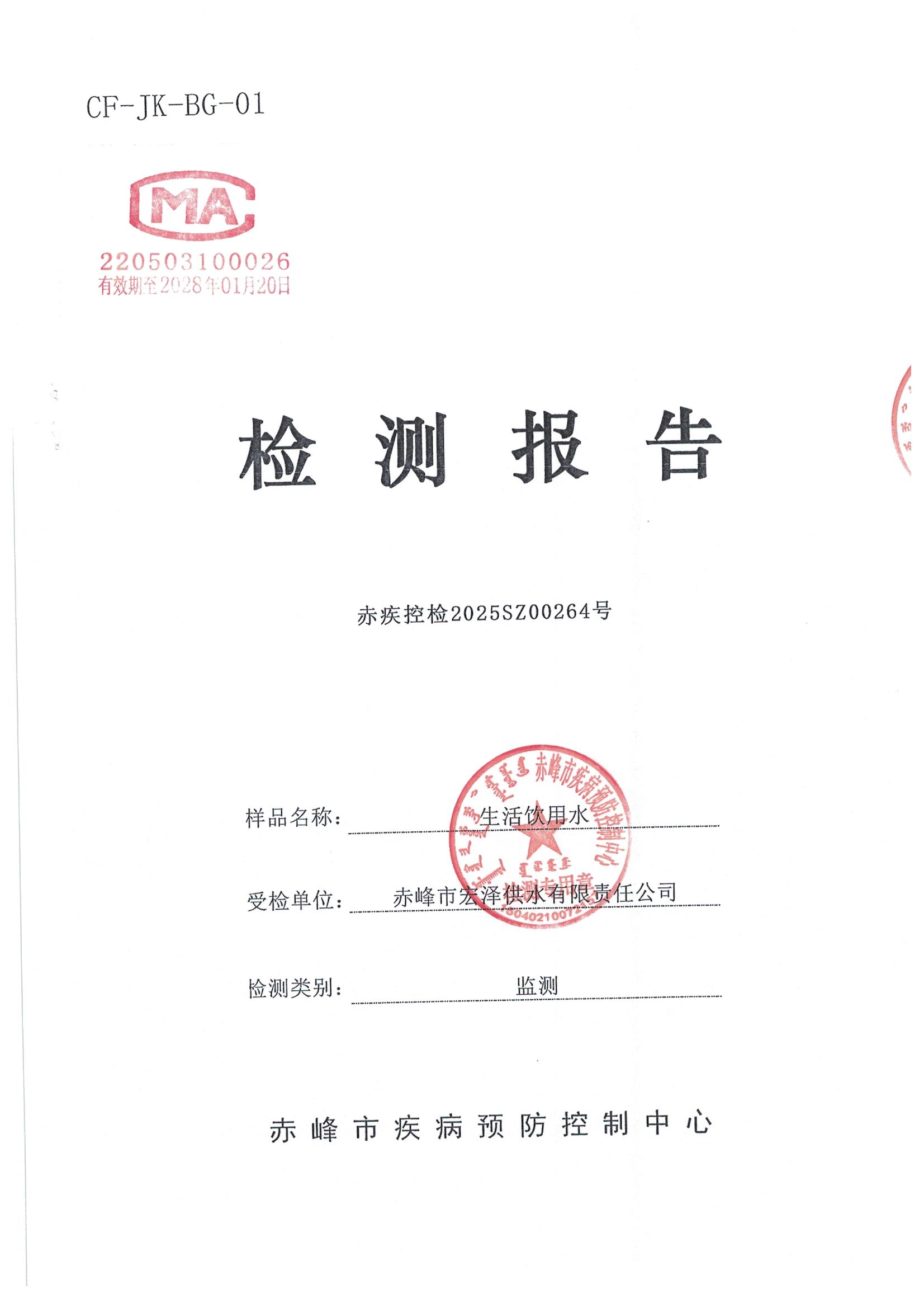 按照《赤峰市水污染防治工作方案》要求,现将赤峰市宏泽供水有限责任公司一水厂、二水厂、四水厂、赤峰九龙供水有限责任公司2025年第三季度生活饮用水水质检测结果予以公告。