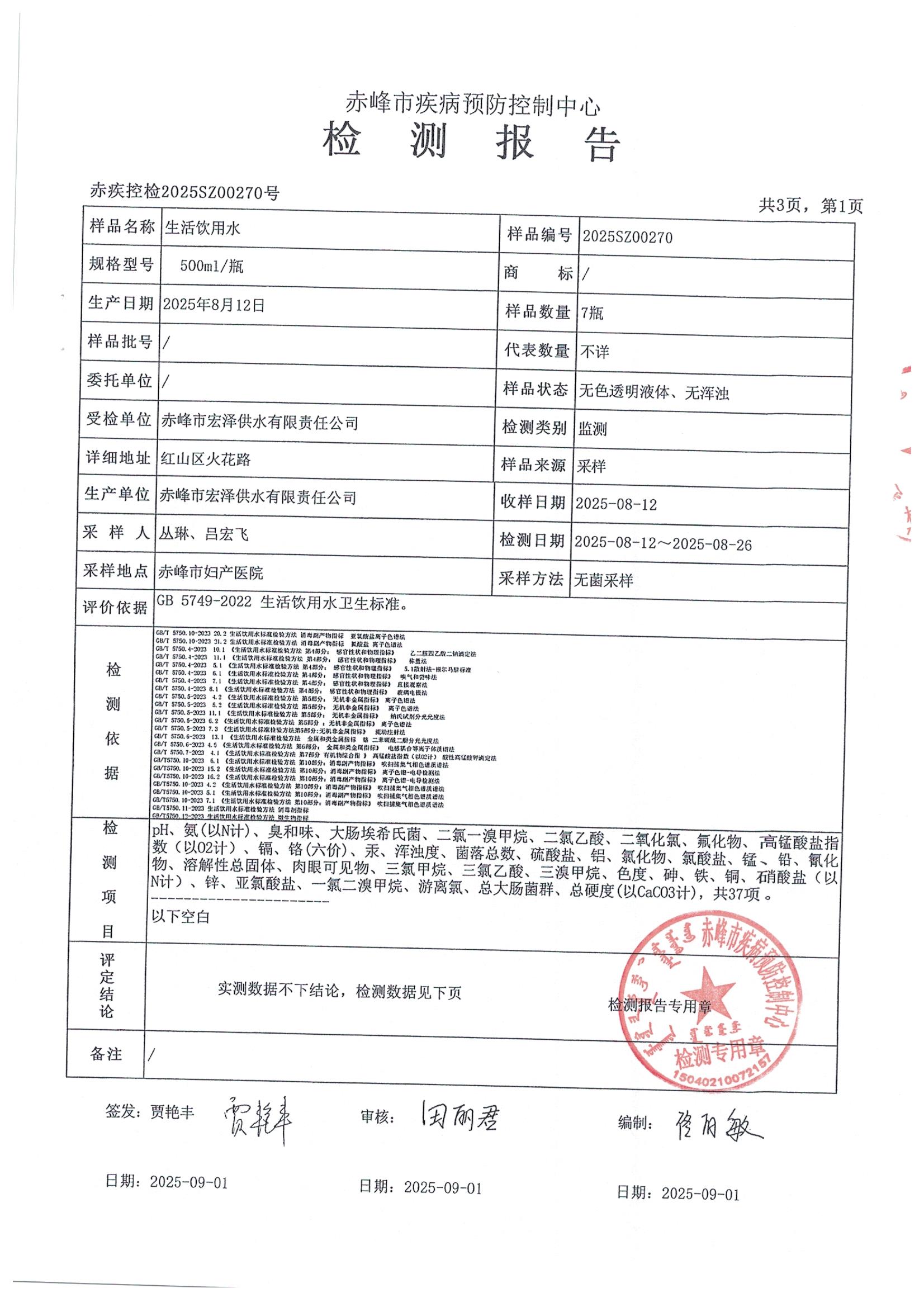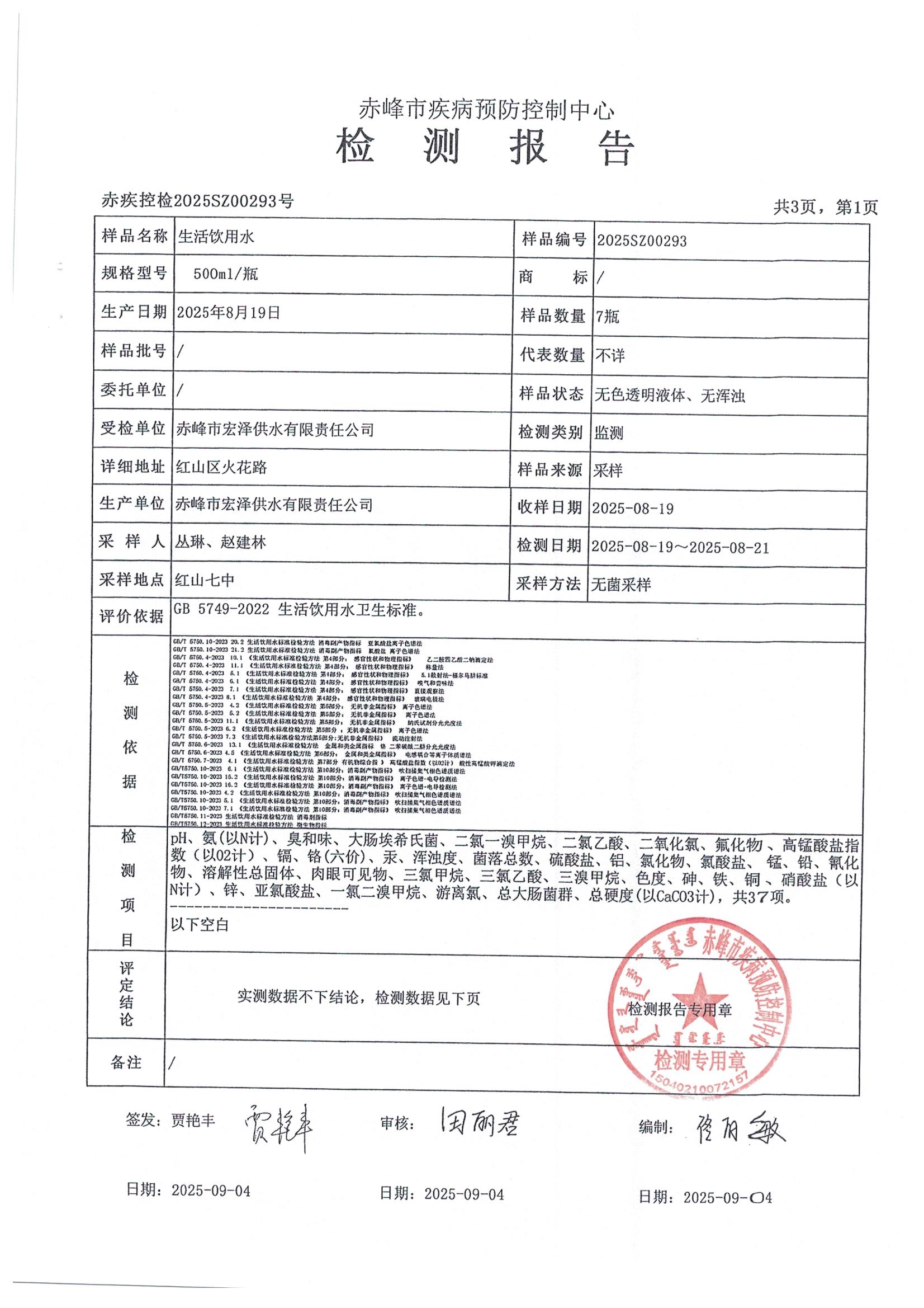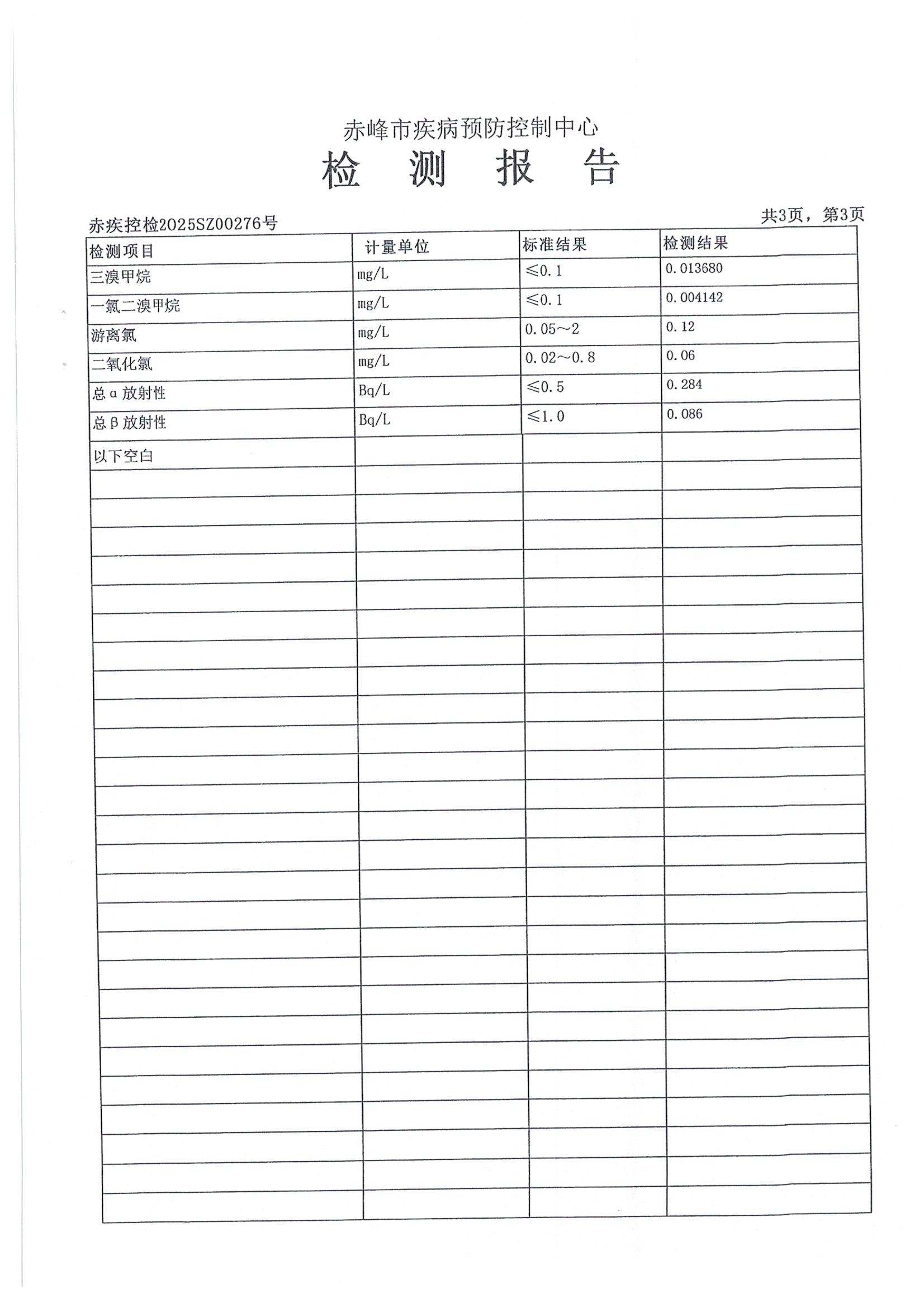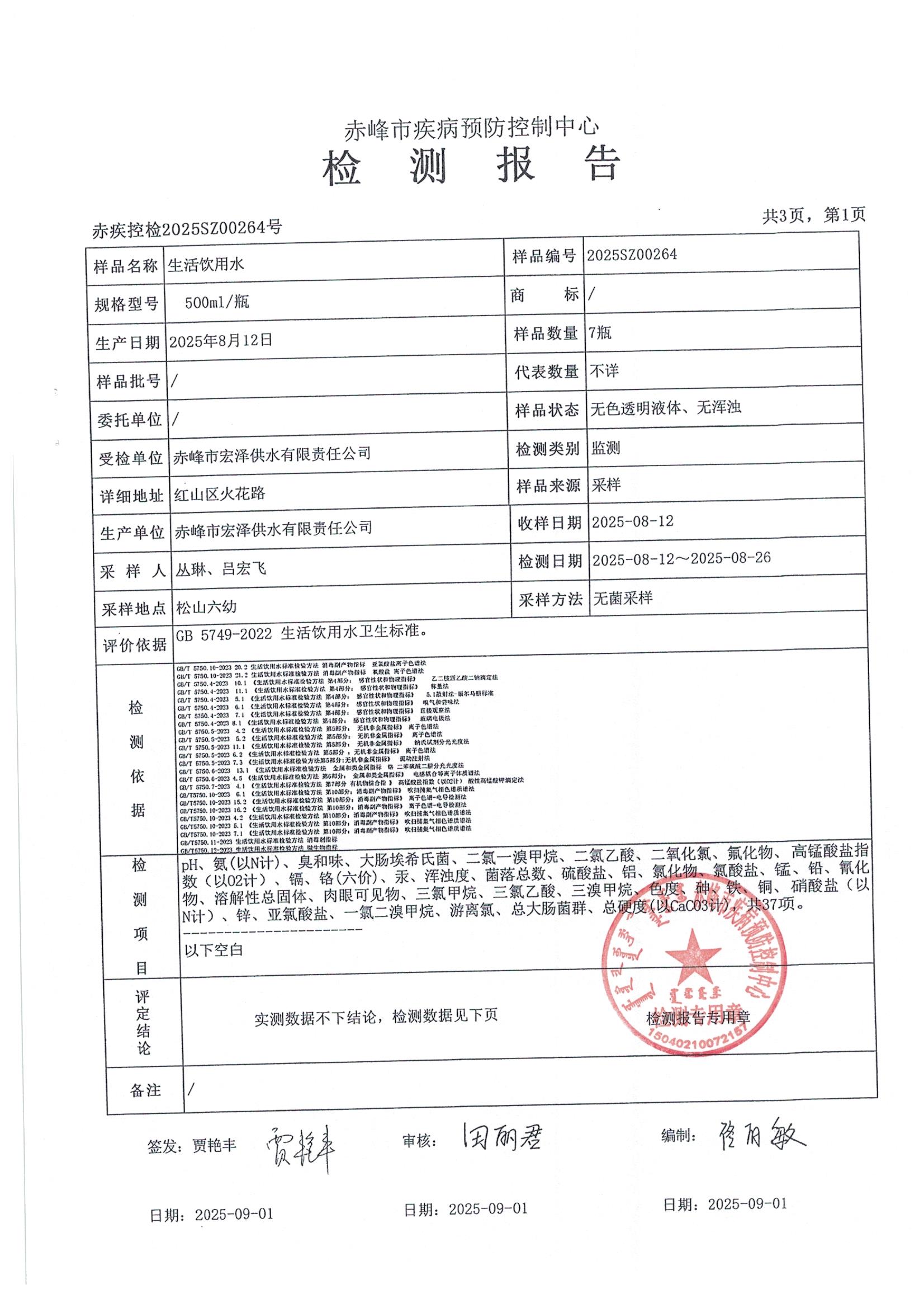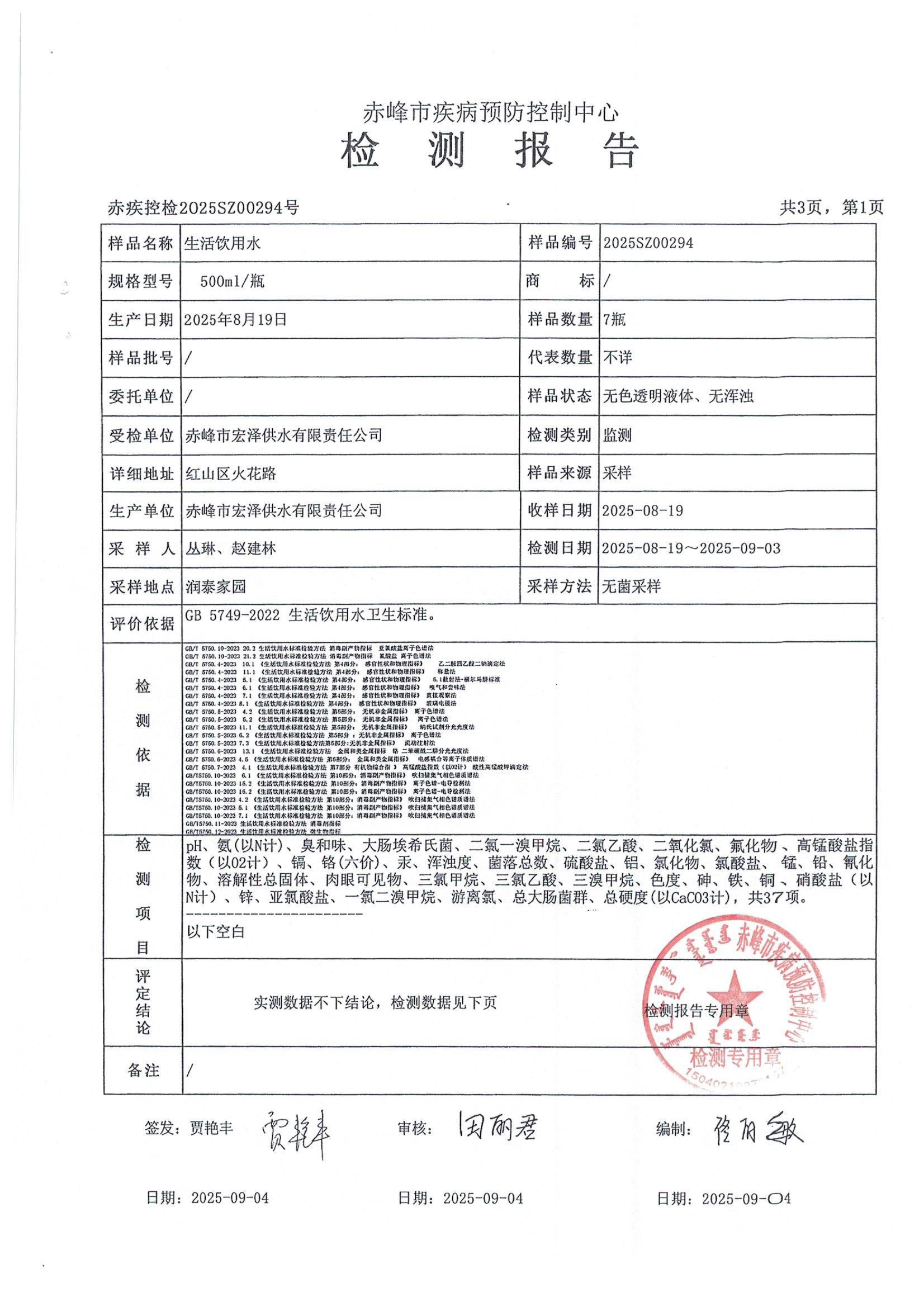 按照《赤峰市水污染防治工作方案》要求,现将赤峰市宏泽供水有限责任公司一水厂、二水厂、四水厂、赤峰九龙供水有限责任公司2025年第三季度生活饮用水水质检测结果予以公告。