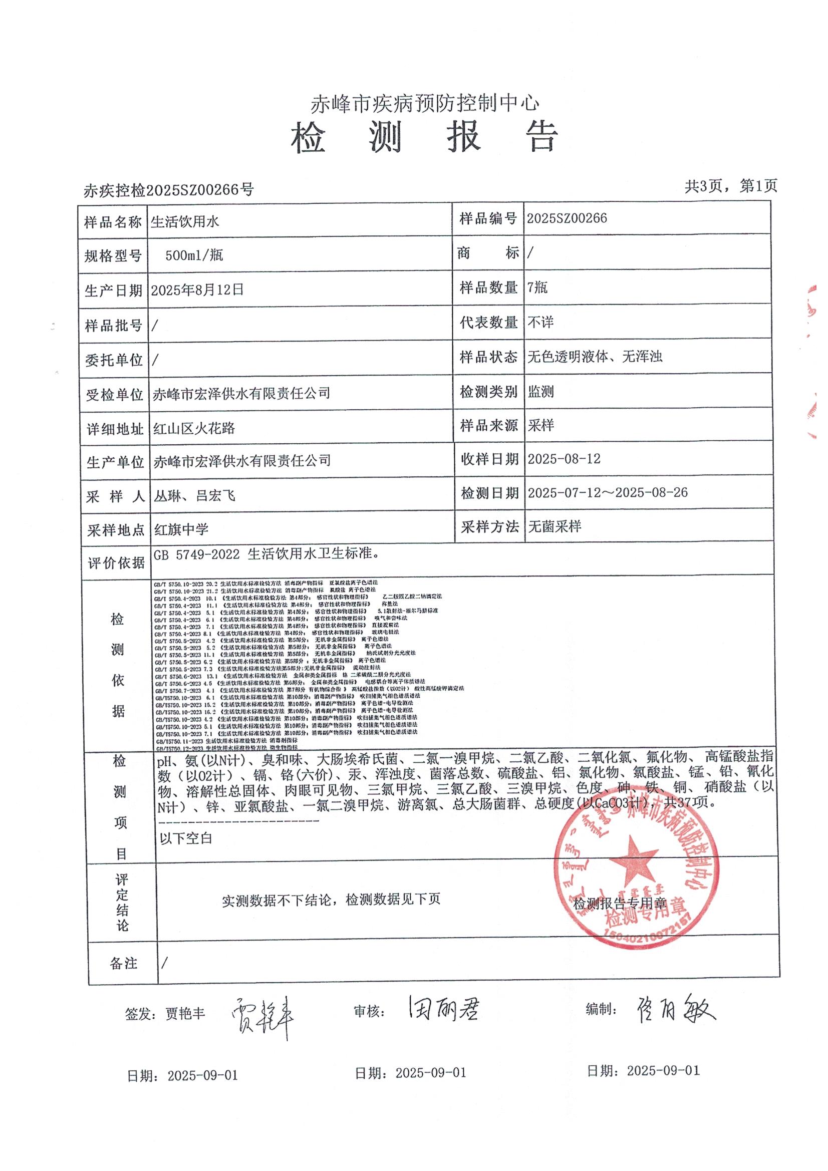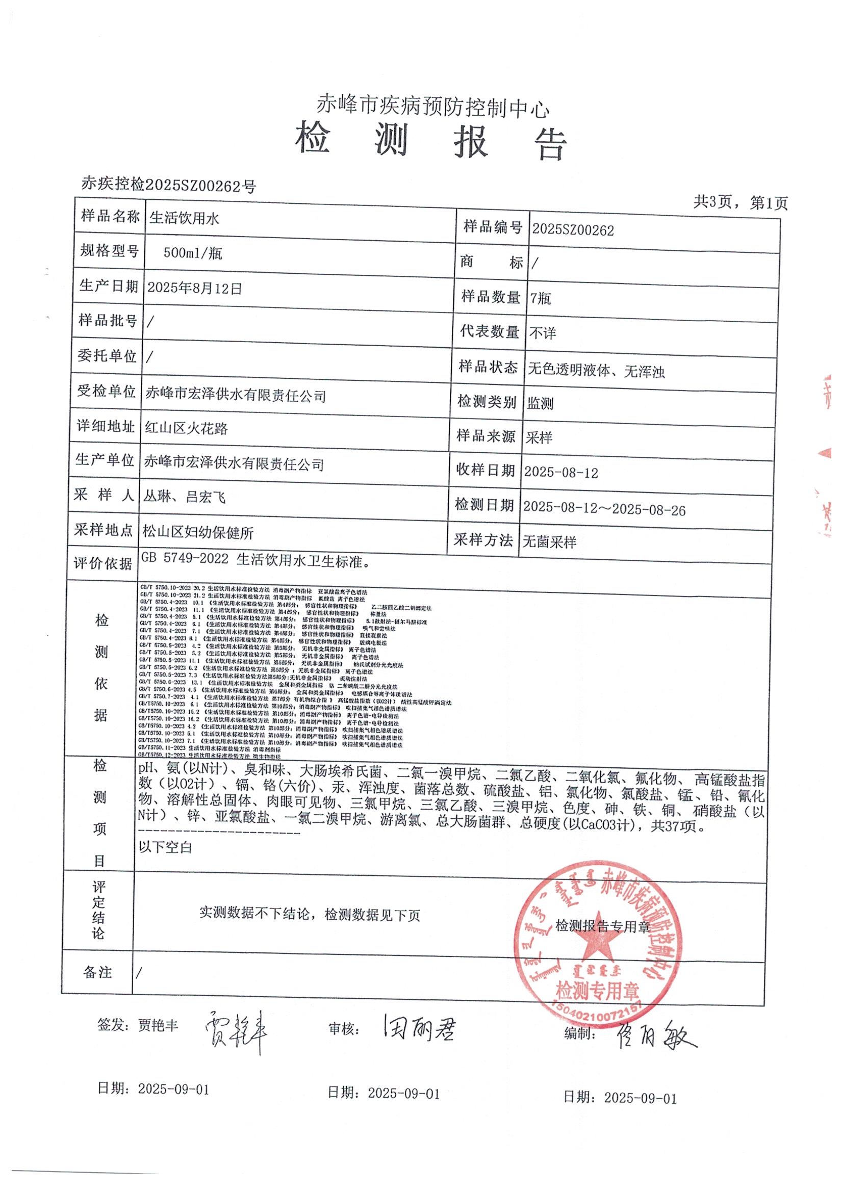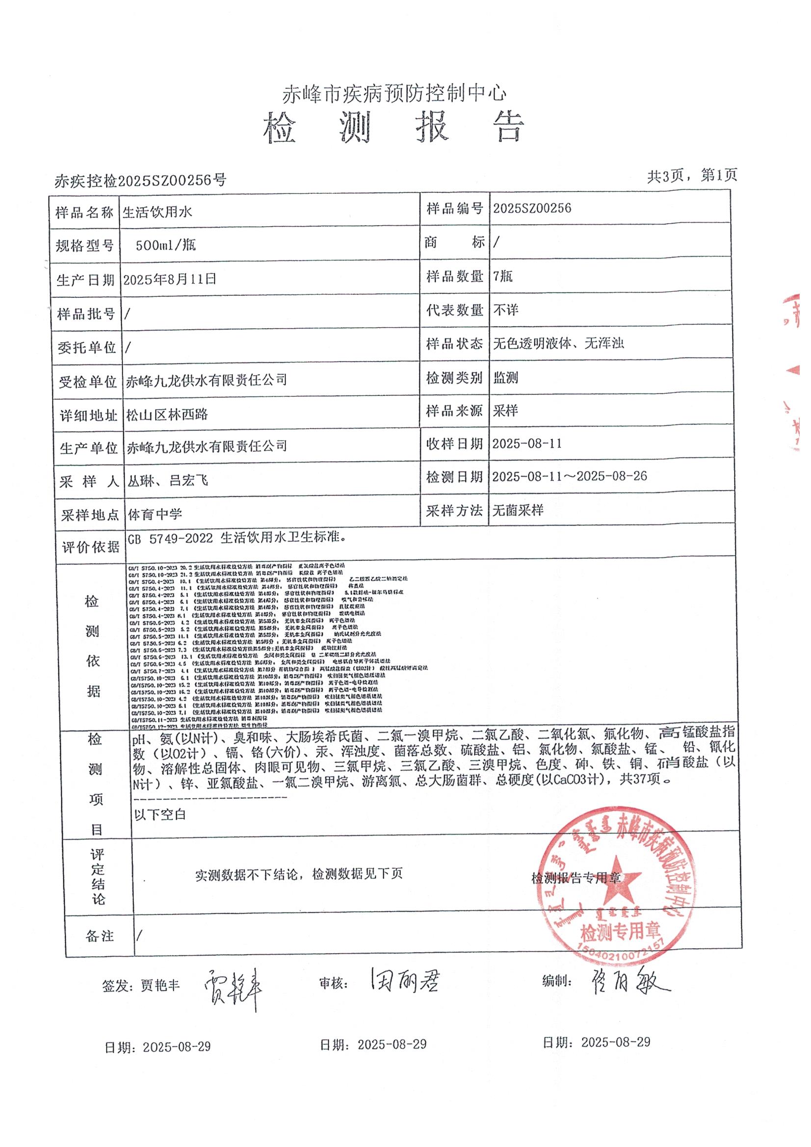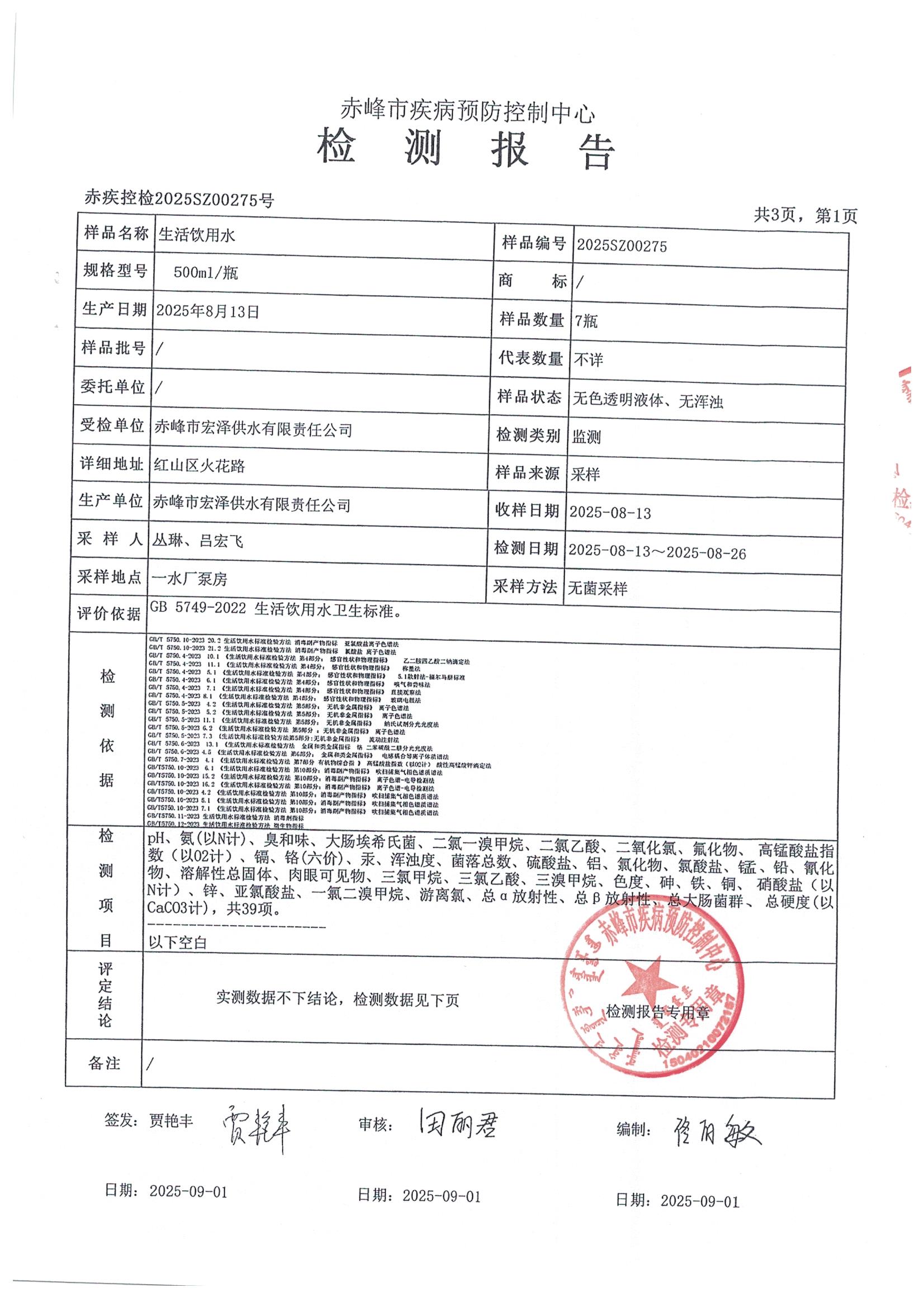 按照《赤峰市水污染防治工作方案》要求,现将赤峰市宏泽供水有限责任公司一水厂、二水厂、四水厂、赤峰九龙供水有限责任公司2025年第三季度生活饮用水水质检测结果予以公告。