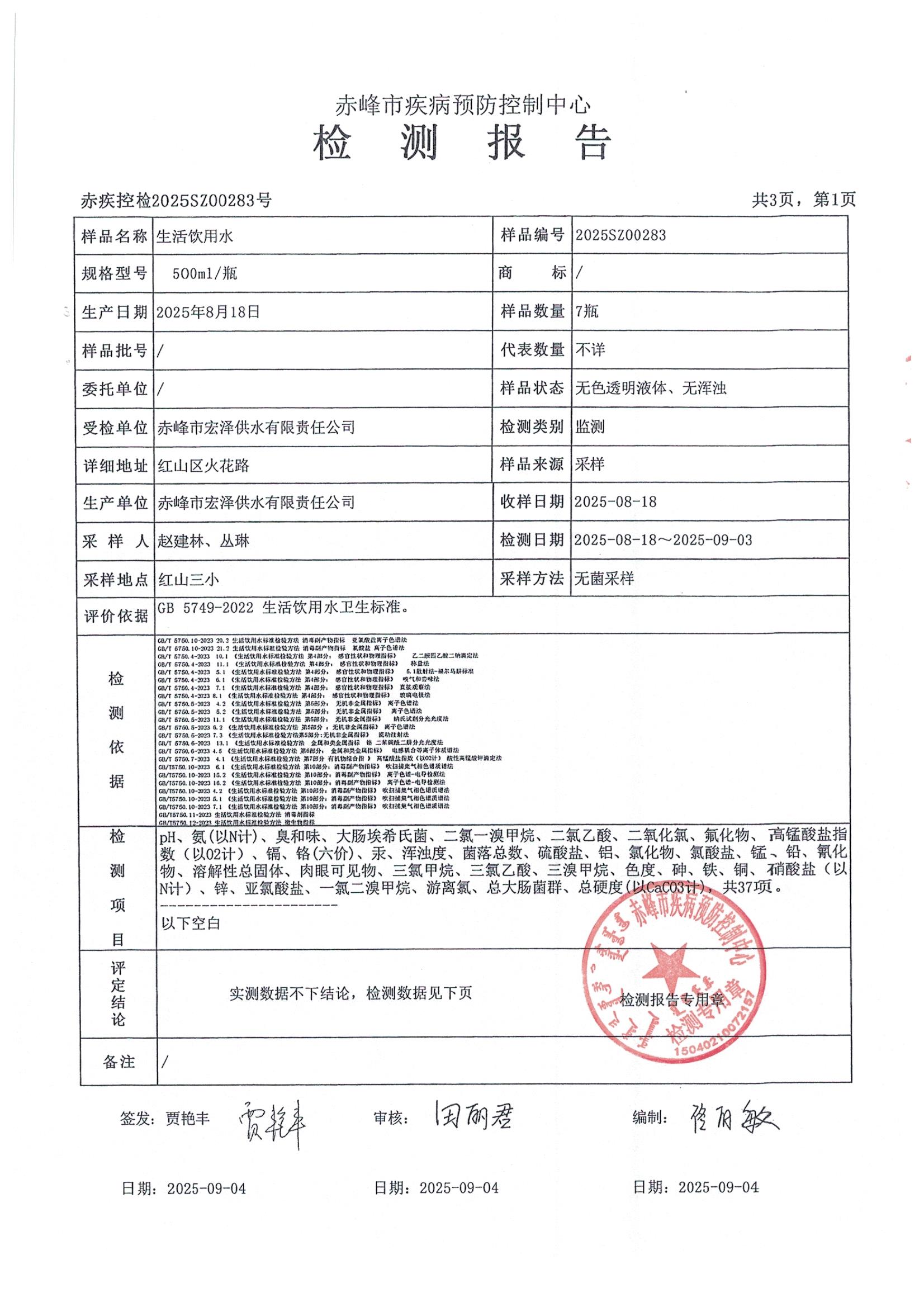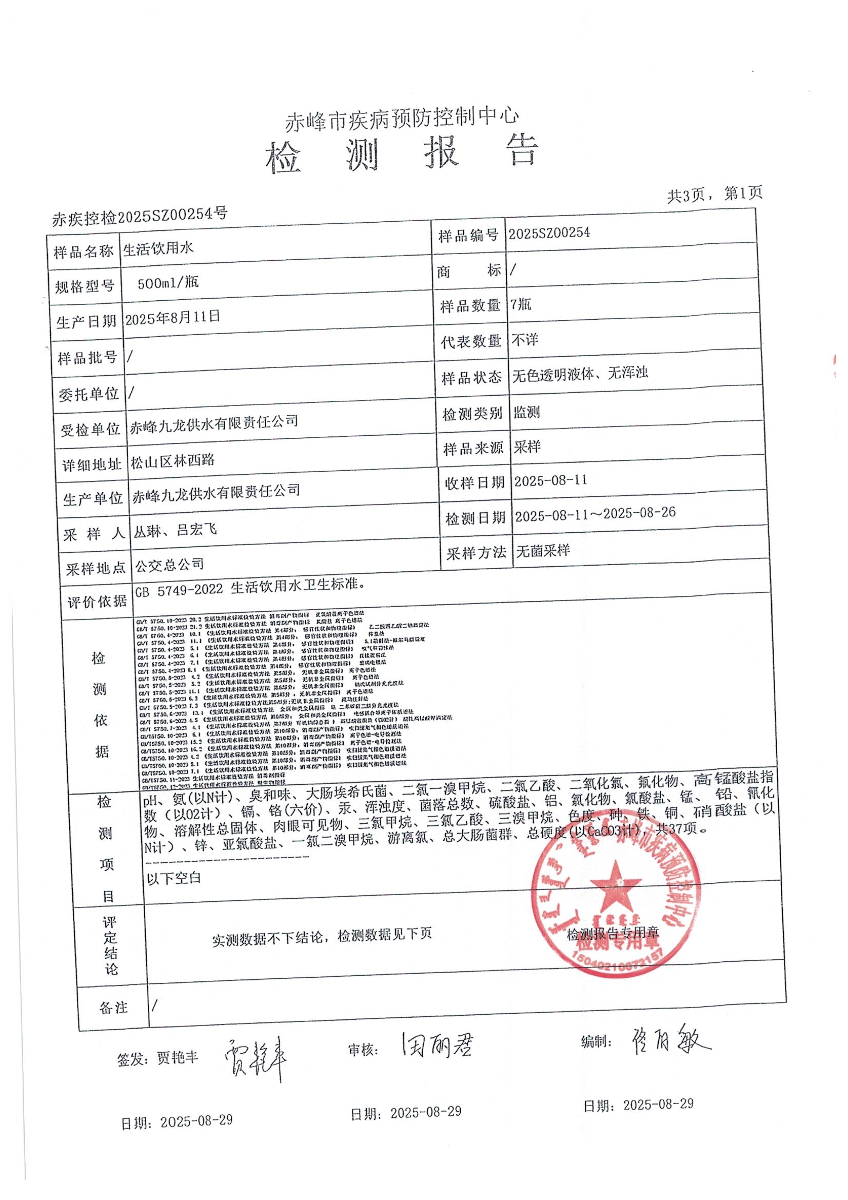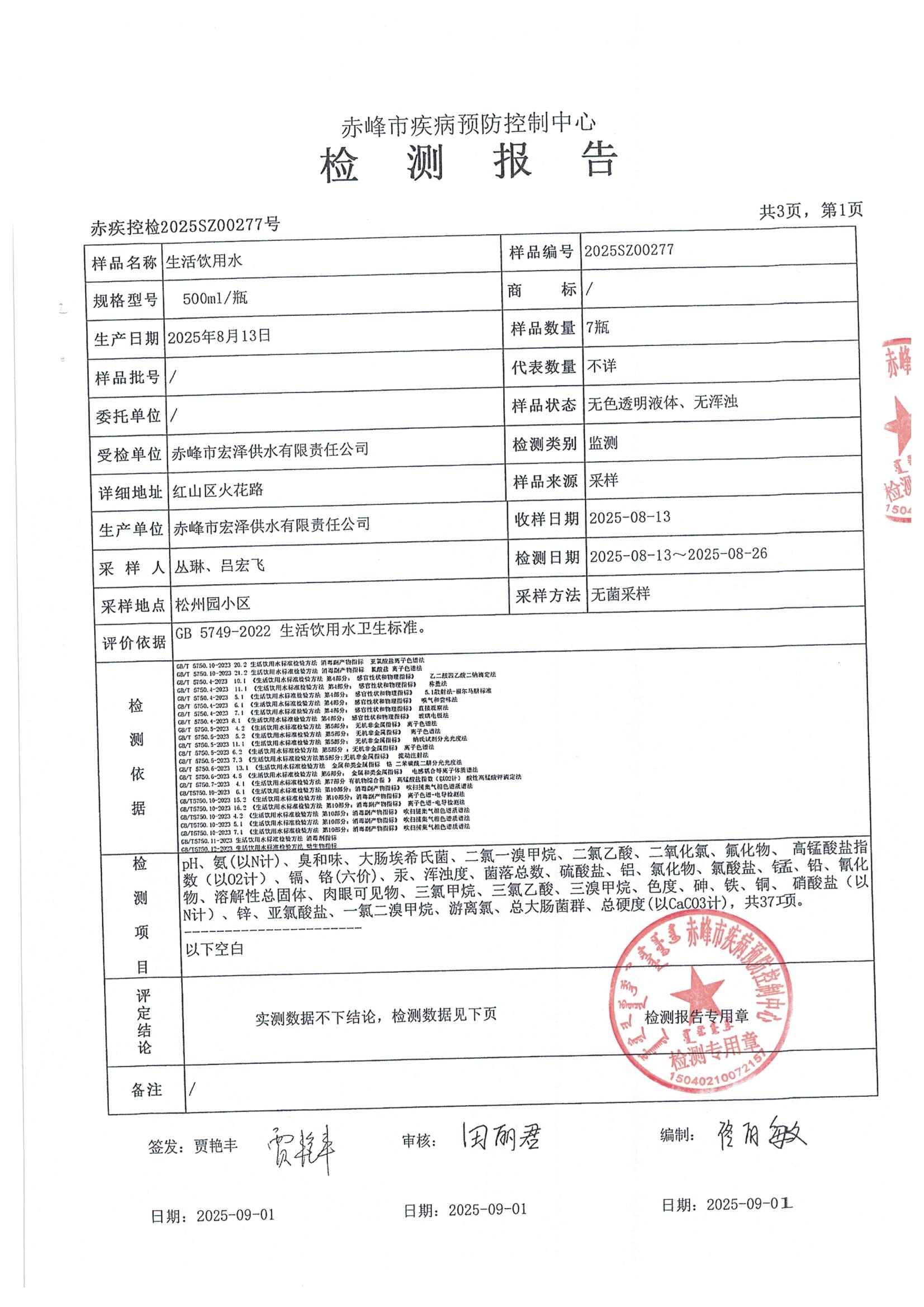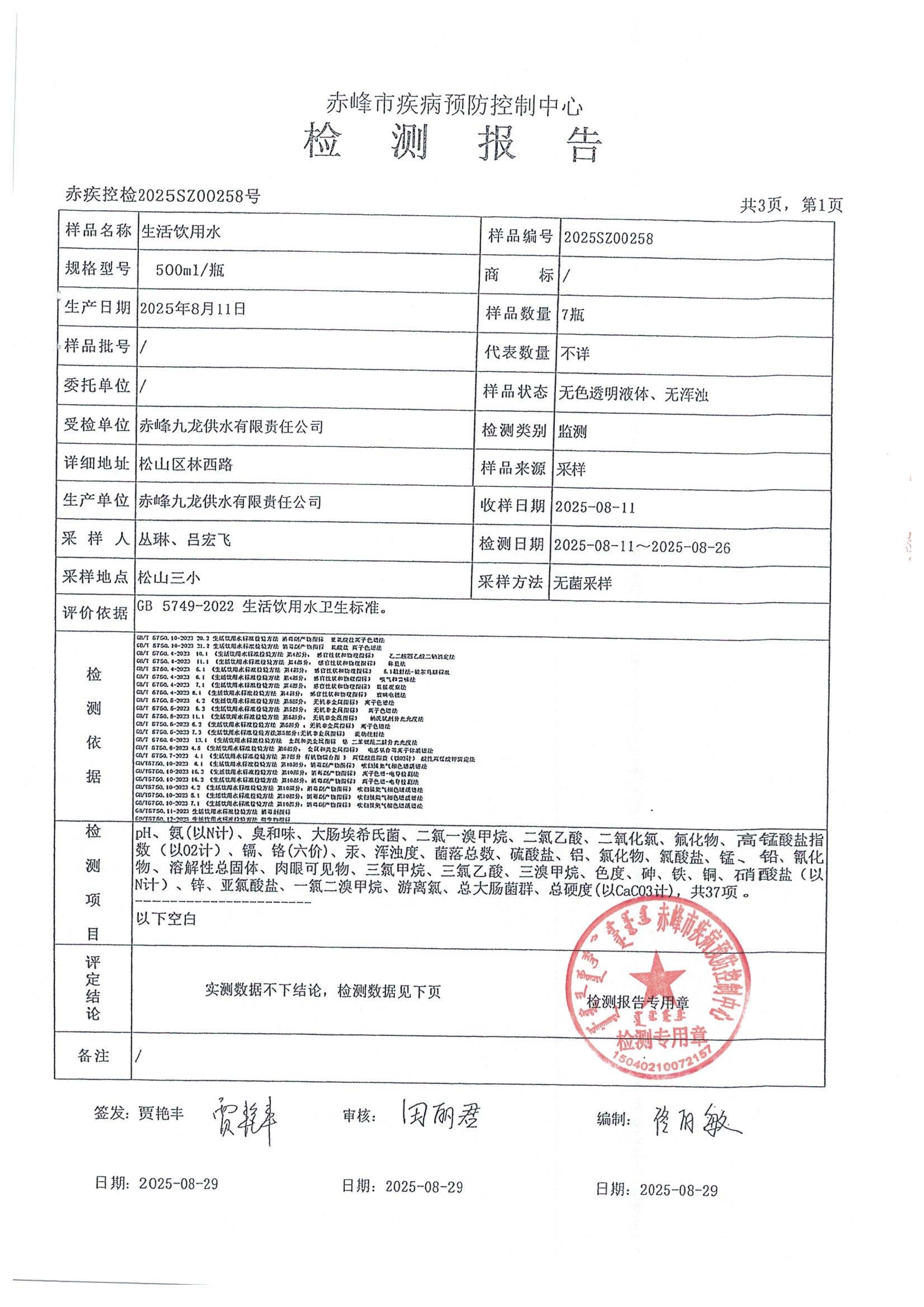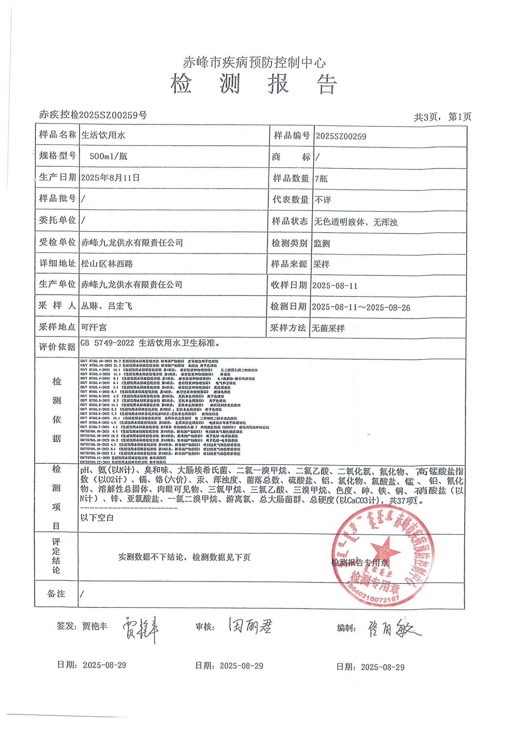 按照《赤峰市水污染防治工作方案》要求,现将赤峰市宏泽供水有限责任公司一水厂、二水厂、四水厂、赤峰九龙供水有限责任公司2025年第三季度生活饮用水水质检测结果予以公告。